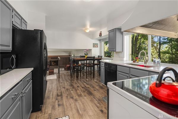 有貝爾維學校的質量三級的家,紐波特HS,Tyee MS,基本的薩默塞特。私有樹木繁茂的全部。接近公園和鄰里足跡系統。家很好被維護。新近地繪裡裡外外與更新地板。在底層的舒適木灼燒的壁爐。