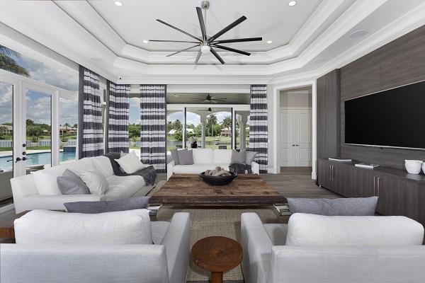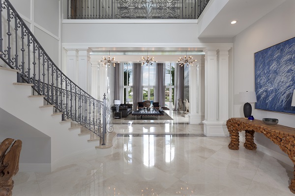 Дом имеет 7 спален с 7 полными и 3 половинными ваннами. Самые интересные включают вертеп с мраморным влажным баром, гаражом 5-залива, системой средств массовой информации surround-звука, теннисным кортом, точными меблировками известным домом Meredith Baer дизайнера (дополнительно доступным) и грандиозным мраморным фойе с широкой лестницей, для того чтобы назвать несколько. Второй этаж включает 4 сюиты спальни, 2 с балконами прибрежной полосы озера. Также исследование, отраженная студия йоги спортзала и бар утра. Обширные размещещния делают им мечт дом для тех ища спокойный тропический оазис берега озера.