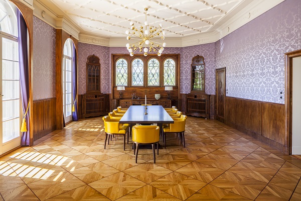 近年來,華麗地詳述的招待會大廳俯視的湖Glienicker主持了這樣高官和皇族像德國總理格哈特・施羅德王子查爾斯和前。實際上,巴洛克式有靈感的住所懷疑了它歷史的自己的地方,很多次。在1945年在冷戰期間,除臨時使用在波茨坦會議期間之外,它的與Glienicke橋梁的幾乎接近以後將證明重大。叫作間諜橋梁,它是囚犯交換(以及斯蒂芬・斯皮爾伯格的2015影片同名一個頻繁站點在美國和蘇維埃之間的)。實際上,柏林圍牆直接地通過物產跑了。
