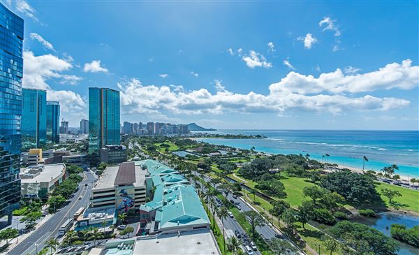 这间全新(从未住过)的豪华公寓拥有令人惊叹的大理石饰面和一面全面的玻璃外墙,可以欣赏到威基基和钻石石头的海景全景,这是东方人最喜欢的景点。此外,酒店还设有健身中心、高尔夫模拟器、无边海景游泳池、礼宾服务和全天候常驻经理。