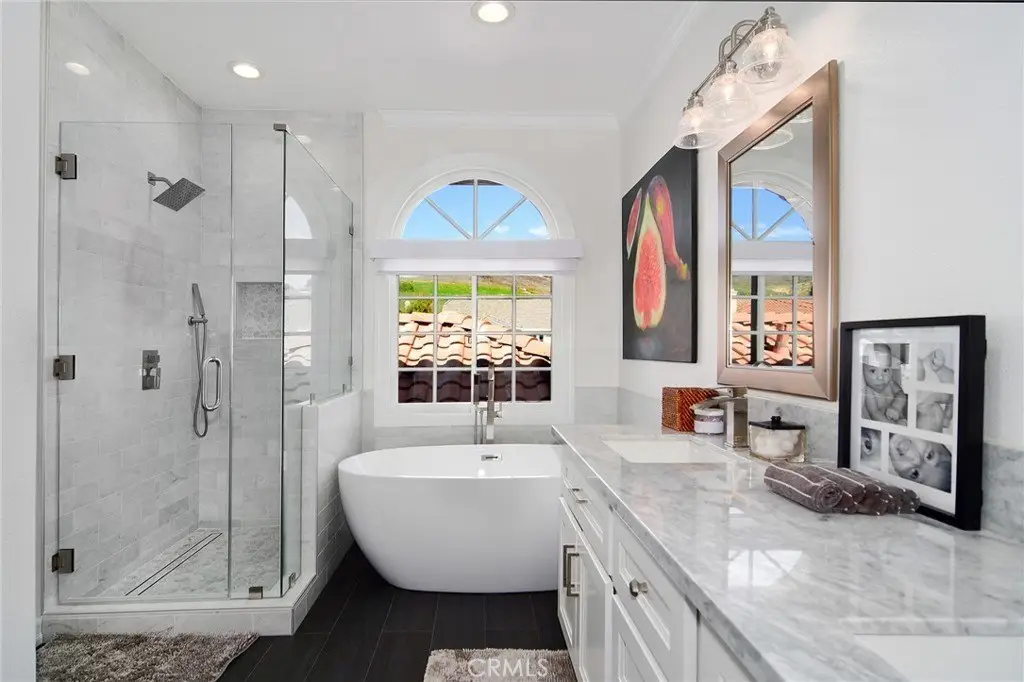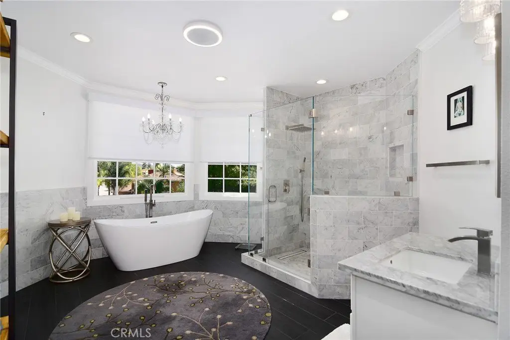 Ein absolut atemberaubendes, schlüsselfertiges Haus in Morrison Highlands! Dieses wunderschön renovierte Anwesen mit 5 Schlafzimmern und 5 Bädern liegt in einer ruhigen Wohngegend am Ridgeway Drive und bietet die perfekte Kombination aus Privatsphäre, Bergblick und luxuriösem Wohnen. Eingebettet auf einem privaten Grundstück mit üppiger Landschaftsgestaltung und Tropfbewässerungssystem bietet dieser Traum für jeden Gast einen übergroßen Pavillon, einen eingebauten Grill mit Bar, eine überdachte Terrasse und ein komplettes Soundsystem für drinnen und draußen. Die Oase im Hinterhof umfasst einen glitzernden Pool und einen Whirlpool mit neuer PebbleTec-Oberfläche, modernisierten Fliesen und komplett neuer Poolausstattung – ideal für ganzjährigen Genuss. Betreten Sie das Haus und entdecken Sie brandneue Holzböden und hocheffiziente LED-Beleuchtung. Der durchdachte Grundriss umfasst ein geräumiges Schlafzimmer im Erdgeschoss mit eigenem Bad, eine Gästetoilette, ein formelles Esszimmer, ein Wohnzimmer mit Kamin und ein großes Familienzimmer mit einem zweiten Kamin und einem Barbereich. Die Küche des Küchenchefs ist das Herzstück des Hauses und besticht durch neue Edelstahlgeräte, eine massive Kücheninsel mit Spülbecken und Sitzgelegenheiten, Quarz-Arbeitsplatten und -Rückwand, Shaker-Schränke mit Soft-Close-Türen, Auszüge, Gewürzregale und Vorratsschränke. Ein sonniger Frühstücksbereich trägt zum Charme bei. Im Obergeschoss befinden sich vier weitere Schlafzimmer und drei wunderschön modernisierte Badezimmer mit italienischen Fliesenböden, Duschen und Waschtischen aus Carrara-Marmor sowie weißen Shaker-Schränken. Die großzügige Hauptsuite verfügt über einen Kamin, einen flexiblen Sitzbereich – perfekt als Büro oder Fitnessstudio –, ein luxuriöses Bad mit freistehender Badewanne, Doppelwaschbecken und einen großzügigen begehbaren Kleiderschrank. Zwei der Nebenschlafzimmer teilen sich ein Designerbad mit Doppelwaschbecken und separater Badewanne und Dusche, während das vierte Schlafzimmer im Obergeschoss über ein eigenes Bad verfügt. Mit wenig Verkehr, einem herrlichen Blick auf die Santa Monica Mountains und einer friedlichen, ruhigen Lage bietet dieses Juwel in den Morrison Highlands wirklich alles.