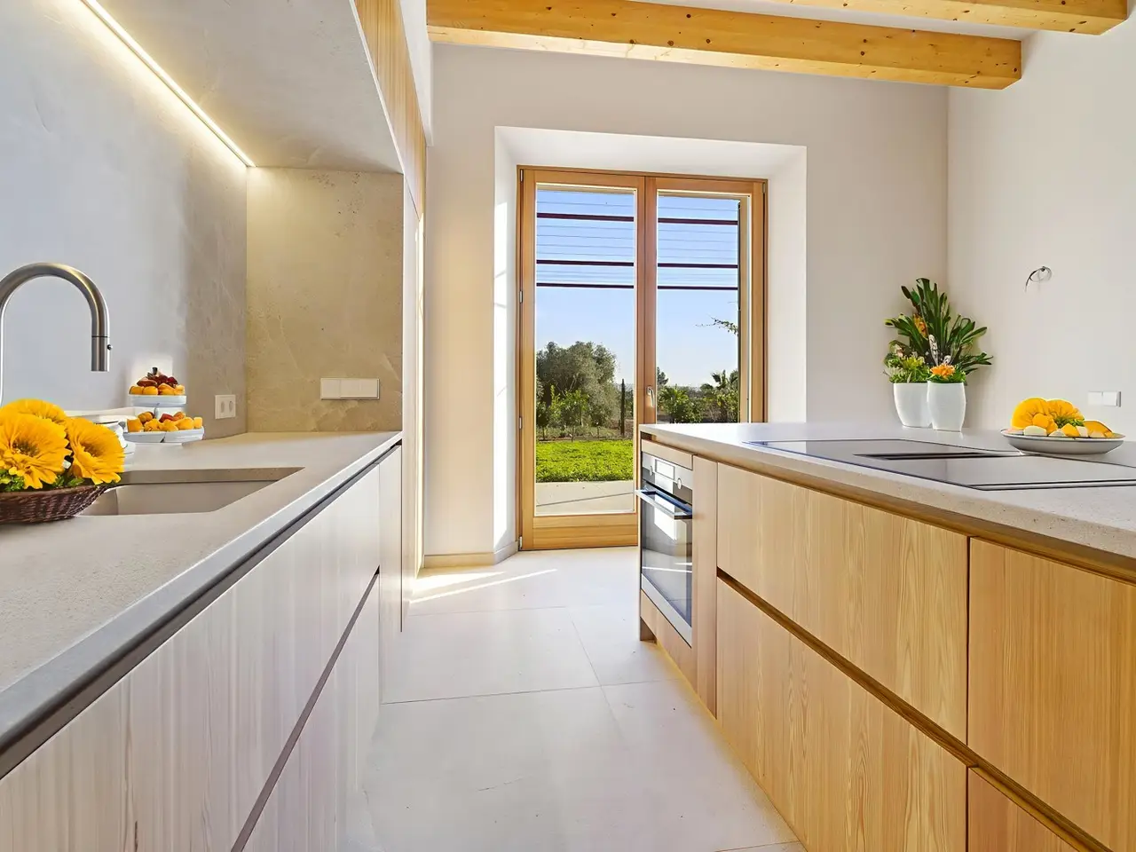 Fantastic finca with panoramic views between Santa Maria and Alaró for first occupancy. The spacious plot of approx. 15,976 m² has a unique, very picturesque location with views of the castle of Alaró and the striking Puig de Alaró. The finca, which was built in 2024, offers approx. 479 m² of living space, a tasteful fusion of modern and rustic elements with open and bright living areas and has 4 bedrooms and 4 bathrooms en-suite. A basement area and a garage for 2 cars complete this fantastic property. An own well and a photovoltaic system offer further independence and sustainability. Wonderful pergolas and terraces surround the finca and the large pool is nestled in the Mediterranean garden with olive, carob and almond trees and the chill-out area. This finca is a special retreat for nature lovers, offering a harmonious combination of modern living comfort and rural surroundings. The access to fresh, clear air and the quiet location make this property a special place to live for people who appreciate life in harmony with nature and at the same time do not want to do without modern amenities. This property is aimed at prospective buyers who value upscale furnishings and a well-thought-out spatial design. Arrange a viewing to see the uniqueness of this property for yourself. We will be happy to answer any questions you may have and provide you with further information about this property.