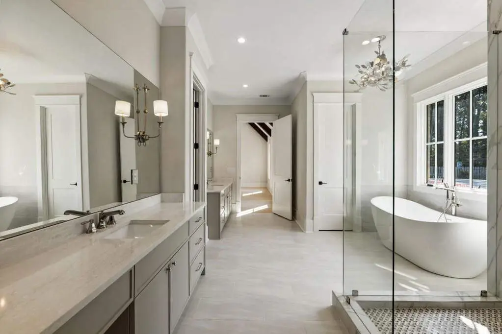 On this quiet street just outside of downtown Alpharetta, enjoy the convenience of a premier location paired with the serenity of a private and level walk out on the main level to the backyard with this gorgeous new construction. This newly built home on just under an acre lot has been thoughtfully designed and beautifully appointed with every upgrade, including a fully installed elevator for effortless access between levels and primary on main level with spacious bedrooms upstairs and three laundry rooms.. The main-level primary suite offers vaulted ceiling with beams and a fireplace as well as access to the backyard and covered porch area. There is abundant storage, and seamless walkout to outdoor living spaces make this residence as functional as it is refined. This elevation is stunning with timeless brick and accented with limestone details and an arched iron entry door sets the tone for enduring craftsmanship from the very first impression. A level driveway leads to the three-car garage with carriage doors, while gas lanterns and cedar columns add warmth and character to the front covered porch. Inside, light-filled rooms with soaring ceilings and rich hardwood floors welcome you. The living room is anchored by a striking 48-inch fireplace and opens to the gourmet kitchen, where custom cabinetry extends to the ceiling, stone countertops shine under designer fixtures, and professional Sub Zero and Wolf-grade appliances make entertaining effortless. A walk-in pantry and butler's area with wine cooler add convenience and charm as well as a scullery featuring additional beverage refrigerator, dishwasher and lots of extra counter and cabinet space for your entertaining and storage needs. The main-level primary suite features vaulted ceilings with cedar beams and a spa-like bath with soaking tub, oversized glass shower, and expansive custom closet. Three car garage with expansive mud room and laundry space. Upstairs, three bedrooms each include private en-suite bath