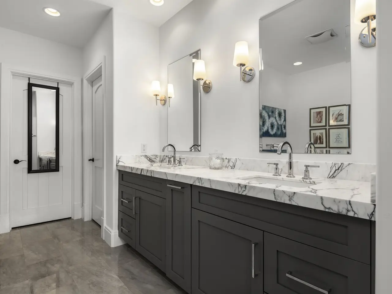 - Italian honed marble bathrooms