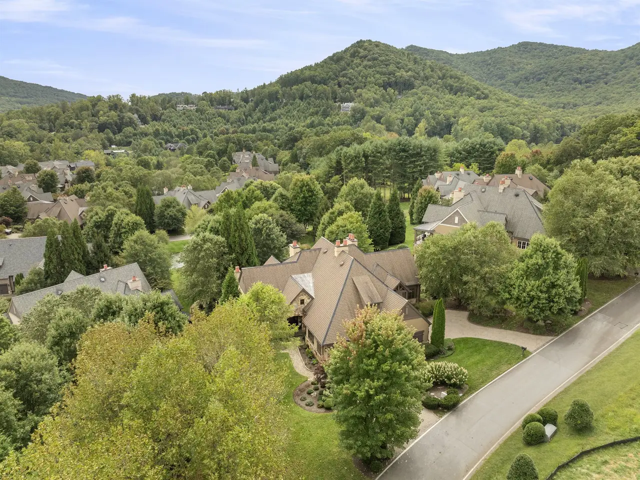 The Meadow is one of the most popular enclaves in The Cliffs at Walnut Cove. Awaken to the warm morning light shining through spacious windows, the sound of the stream/waterfall in your south-facing backyard, and beautiful mountain vistas. This large townhome was renovated "down to studs" and completed in 2021. Phenomenal floor plan for entertaining with a 20'+ vaulted great room w/beamed ceiling, integrated sound system throughout, gourmet chef's kitchen with Bosch, Wolf/SubZero appliances, powder room, laundry and master on the main floor. Spa-like bathrooms all feature Italian honed marble, Brizo fixtures and custom cabinetry. The master bath features a frameless shower, Italian porcelain tile, a Victoria & Albert soaking tub and 2 custom his and her closets. Downstairs offers 2 generous guest suites, living room prewired for media w/custom surround sound system speakers, wet bar with a 7 foot SubZero wine refrigerator. Membership available.