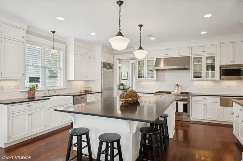 Ein zeitloses Juwel aus Arlington Heights ist auf den Markt gekommen. Dieses exquisite Haus im Nantucket-Stil mit umlaufender Veranda wurde architektonisch für das 2000 m² große Eckgrundstück entworfen, auf dem es steht. Perfekt eingebettet zwischen seinen alten Bäumen, bietet dieses maßgefertigte Haus aus Zedernschindeln und Stein die ultimative Mischung aus Luxus, Eleganz und Komfort. Mit größter Sorgfalt gebaut und sorgfältig gepflegt (neues Dach Nov. 2023), verkörpert dieses Haus den Gipfel maßgeschneiderten Designs und ist durchgehend mit tadellosen Oberflächen geschmückt. Die Küche ist eine kulinarische Oase mit strahlend weißen Schränken in Möbelqualität, erstklassigen Geräten (neuer Sub-Zero-Kühlschrank 2021), eleganten Arbeitsplatten mit harter Oberfläche, wunderschöner Küchenrückwand, einer großen Kochinsel mit Frühstücksbar, einer begehbaren Speisekammer und einem atemberaubenden angrenzenden Frühstücksbereich. Großer formeller Eingangsbereich, weitläufiges Esszimmer mit Anrichte, Büro/optionaler Clubraum im Erdgeschoss, extragroßes Familienzimmer mit Kamin und Einbauschränken, Schmutzschleuse und Waschküche im Erdgeschoss. Die Hauptsuite strahlt Eleganz aus und bietet gewölbte Decken und ein ruhiges En-Suite-Bad mit Doppelwaschbecken, begehbarer Dusche und Badewanne. Die untere Ebene ist eine Oase des Komforts und bietet einen einladenden Freizeitraum, einen vielseitigen Spielbereich, ein Vollbad und eine Bar mit allen erdenklichen Annehmlichkeiten. Glänzende Hartholzböden im gesamten Gebäude, Designerleuchten, Generator, geräumige Garage für 3+ Autos und die Liste geht weiter! Einzigartiger weitläufiger Hinterhof mit großer Terrasse und Feuerstelle. Entdecken Sie den Inbegriff des Vorstadtlebens in bester Lage: in der Nähe preisgekrönter Schulen, Parks, Einkaufsmöglichkeiten und Restaurants.