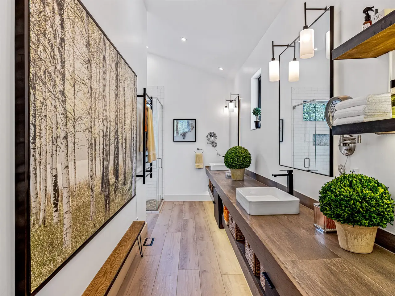 Timeless modern elegance combines seamlessly with the finest in lighting and technology in this custom mountain home located in gated Thoms Estate. Sleek metal surfaces, endless natural light, and earthy wood tones create a magical atmosphere curated by the movement of the sun. Relax in the living/great room with soaring ceilings or entertain on the covered and open decks surrounded by candle lanterns and raised fire boxes. Enjoy a spectacular Chef's kitchen with internally lit drawers, an LED lit Schott Ceran cooktop, and a column refrigerator and freezer. The main level primary suite entices with its privacy and delicious spa bath. The terrace level offers modern stained concrete floors, a wine gallery, fabulous home office/craft room, two guest bedrooms and a bright family room that opens to the terrace patio with concealed storage. Energy efficiency and sustainable living are maximized in this N.C. Green Built Certified home with HERS score of 57. Spectacular, luxury living awaits!