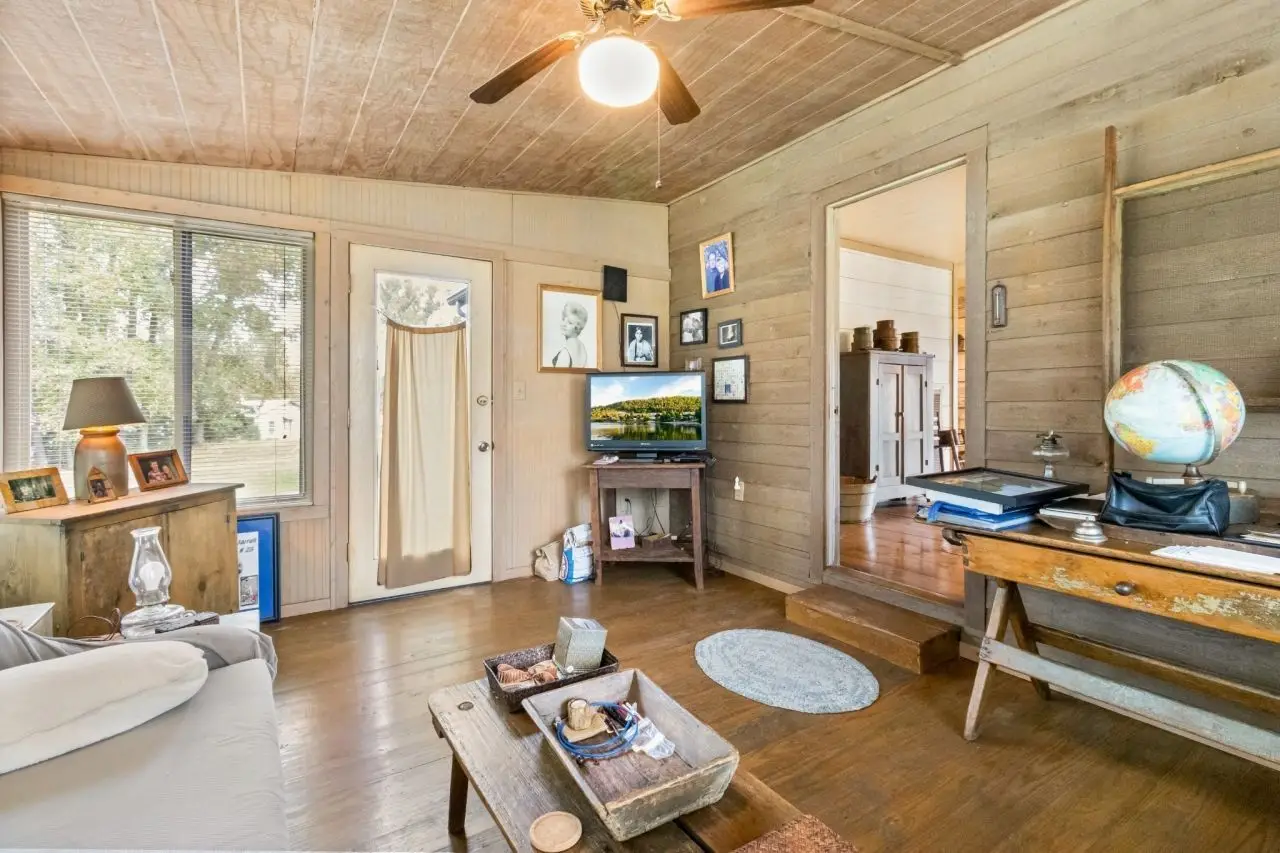 Log home with original pine floors and period trims