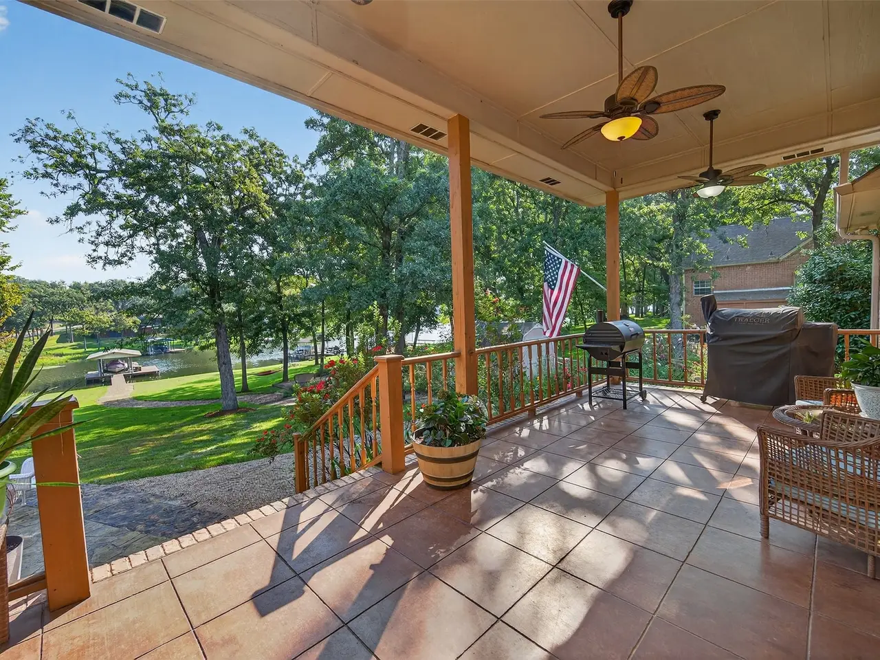 Stunning 4 Bedroom, 2.5 Bath Home on Lake Athens. The home is set just off the main body of Lake Athens, providing an excellent spot for water recreation on the big water. This homes location is in a protected cove making it equally ideal for stand-up paddle boarding, kayaking or a peaceful. morning by the water. The backyard is an oasis, offering an oversized firepit and seating. You will also find a beautiful outdoor stone bar for entertaining and a 2nd flagstone patio closer to the water with access to electric. The covered back porch is so peaceful for enjoying your morning coffee and also offers door access to the primary bedroom, den and kitchen. Inside the home you will find a split bedroom floor plan, as well as an open concept with 2 kitchen bars, convenient for serving, entertaining or enjoying a meal. This home is designed for entertaining, relaxing and enjoying life on the lake, perfect for full time living or a weekend lake getaway. Water depth at the Boat House is 8.5 feet.