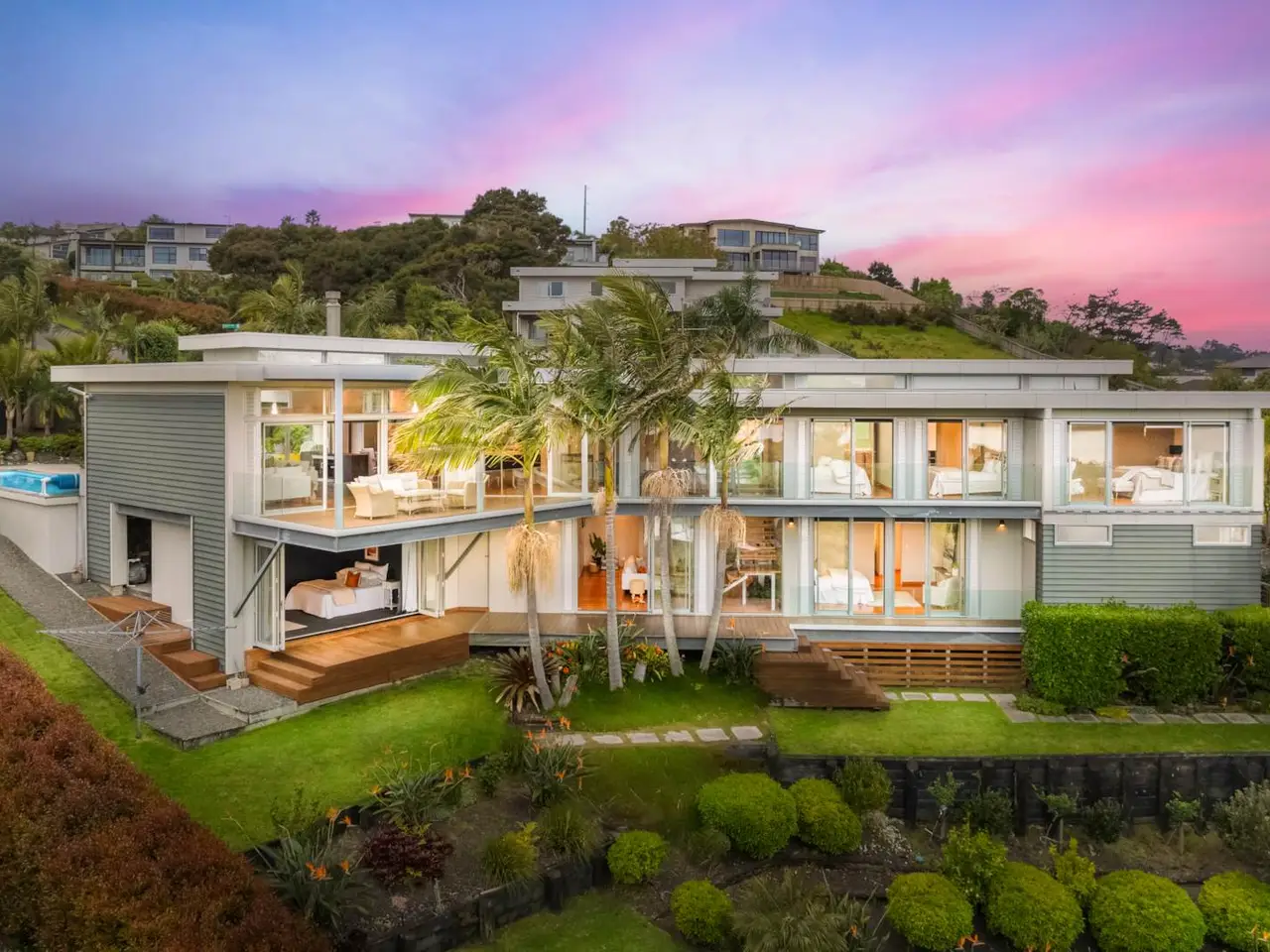 Close to Albany, this exceptional architectural home, designed by Francesco Tonetti of Architecttura – Devonport and built in collaboration with Metro Constructions, Auckland, is a true testament to high-quality craftsmanship and design. Set on a generous 1503sqm section, the home commands stunning views of Lucas Creek and its surrounding scenery. With wide road frontage spanning across Schopolo Place and Kerema Way, this residence offers panoramic vistas from every room, including the bath. Constructed using premium materials such as Titan Board, Linea weatherboard, a cavity system, and reinforced with extensive steel beams across all living areas, the home ensures both durability and luxury. Cantilevered decking and expansive glass windows paired with special aluminum louvre shutters allow the outdoors to blend seamlessly with the interiors. The bespoke floating stairs on steel with solid Tasmanian Oak treads and floors throughout are some of the features on offer. The design is a true testament to Tonetti’s intuitive understanding of space by skillfully using land’s natural contours, embracing the topography of the section to ensure that every room captures the breathtaking views and the ever-changing, vibrant sunsets. The home’s modern, contemporary vibe is perfectly complemented by a relaxed beachside living feel, making it an ideal sanctuary for those who appreciate luxury with a laid-back atmosphere. Upon entering, you are greeted by a spacious layout that ensures both privacy and connection with the surrounding environment. The master suite is a true highlight, offering sweeping views. Full glass ranch sliders and a Juliet balcony open out to the panoramic vistas, allowing natural light to flood the room and giving a sense of openness. The suite also features a large, modern walk-in wardrobe, offering ample space for your belongings. The ensuite is equally impressive, with a bathtub positioned strategically to allow you to soak in the views while you unwind. On the same level, two additional bedrooms enjoy their own share of stunning views. These rooms are serviced by a separate shower and toilet, as well as double vanities—ensuring that no one in the family will ever have to fight over bathroom time. This layout was designed with convenience in mind, allowing for easy use and comfort without compromising privacy. The home’s living spaces have been designed to cater to a variety of needs. On the West facing side, you’ll find expansive decks that provide the perfect setting for outdoor dining and relaxation, with incredible water views and sunsets. A set of louvres offers shelter if the weather turns, allowing you to enjoy the space year-round. On the East facing side, the outdoor area features a swimming pool, lush gardens, and a covered patio-ideal for entertaining or simply relaxing in a private, tranquil setting. Downstairs, the large family room provides plenty of space for casual living and relaxation. In addition, there is an abundance of storage throughout the home, making it as practical as it is beautiful. The lower level also offers flexibility with the option of two bedrooms or a single large bedroom, designed to adapt to the changing needs of a growing family. The family room flows out to a deck that leads to another room, perfect for use as a media room or a home gym, all with picturesque views. This home truly offers the best of both worlds: the luxury of modern living combined with the serene, ever-changing beauty of nature. With its intelligent design, breathtaking views, and versatile spaces, this residence presents a rare opportunity to purchase a truly unique property. Now is the perfect time to upsize and secure this exceptional home, don’t miss your chance to own this incredible piece of architectural brilliance. Deadline sale: Closes on Thursday 10 April 2025 at 2:00PM (unless sold prior)