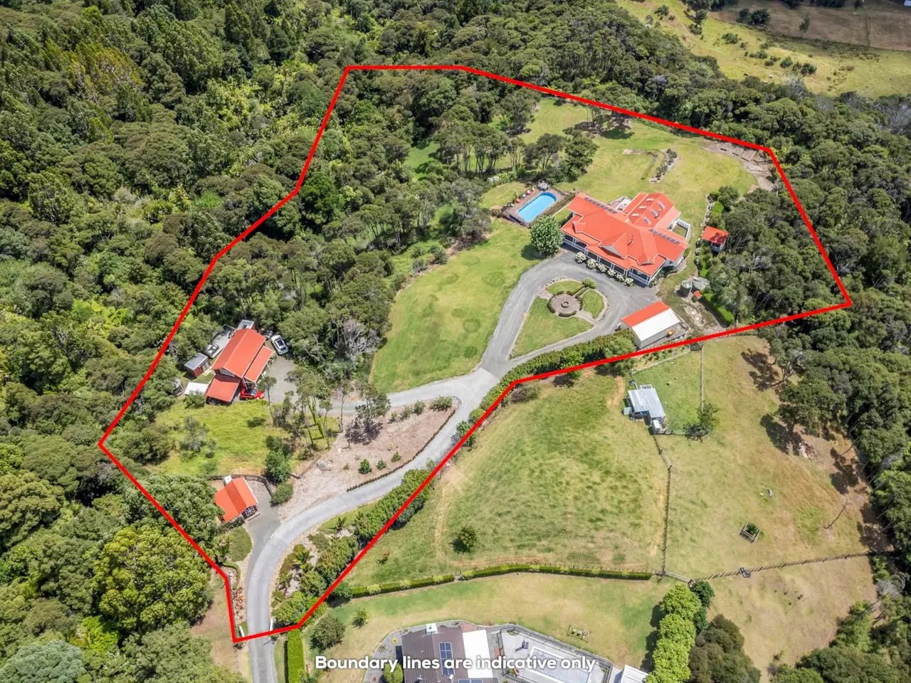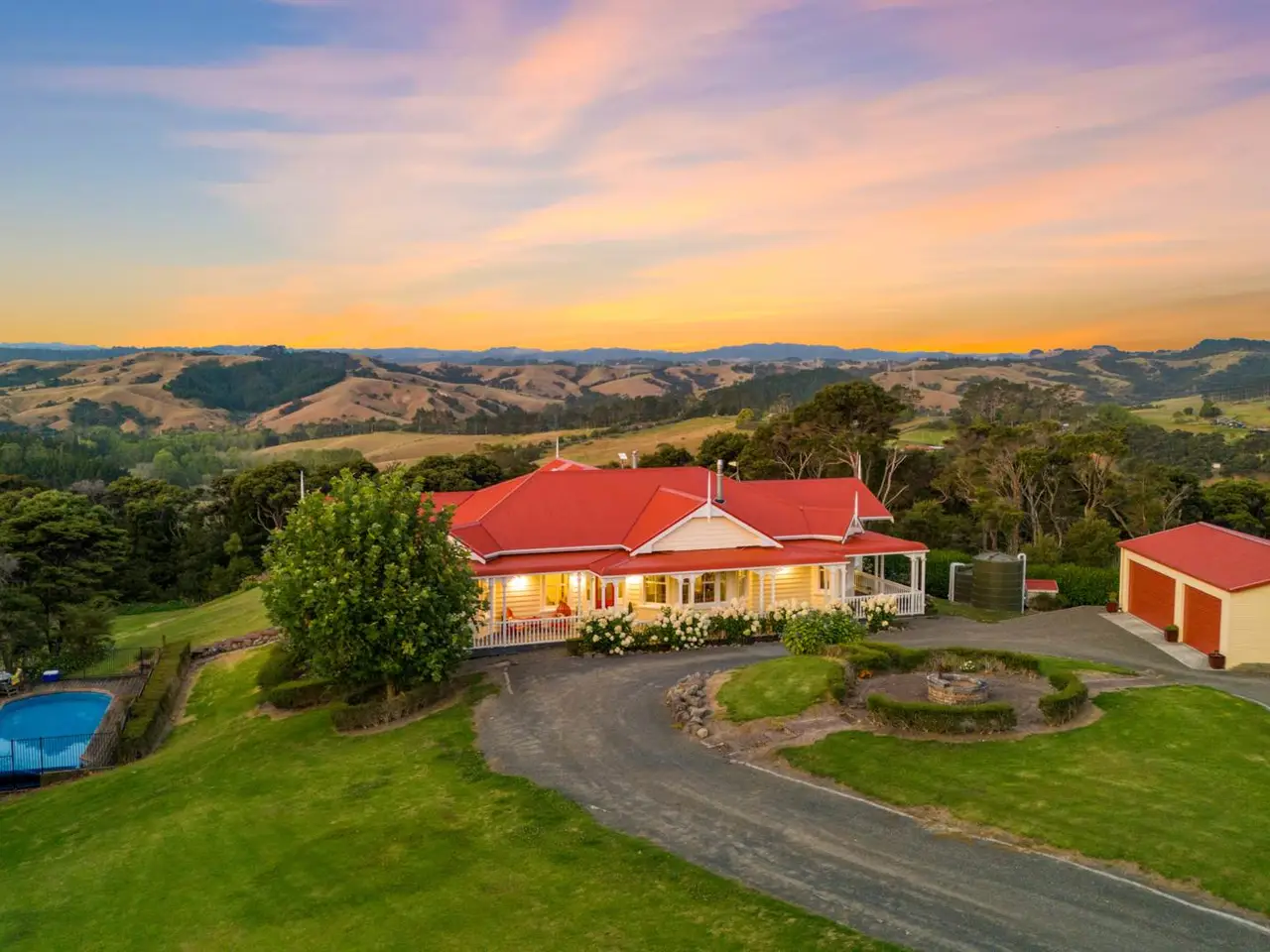 Walking through the gate and looking down the 100-metre drive, you will be captivated by this extraordinary home. This award-winning modern re-creation of a 1900’s era Victorian Villa, resplendent in its beauty, leaves a lasting impression on everyone who visits! It's more than just a home; it's a dream come true, blending contemporary construction with traditional character and the endearing charm of yesteryear!This 6-year-old Supreme Winner of the NZ Grand Designs House of the Year Award bears the exclusive hallmark of bespoke luxury and impeccable craftsmanship. Driving down the concrete driveway past the two-bedroom guest dwelling-The Lodge-the magnificent scale of the villa emerges.Private and established on more than three acres of native bush and landscaped gardens, the villa’s elevated position offers views of the McKenzie Ranges, Kaipara Harbour, and idyllic rural vistas.The luxurious, richly textured interior décor exudes glamourous opulence throughout, with plush carpet underfoot, gallery hallways, 3.6 m high ceiling, feature stained glass windows & bejewelled elegant chandeliers overhead. The layout is spacious & grand. Built to modern standards, the home features a heat pump, double glazing & solar power, providing energy-efficient, comfortable living all year round.The hub of the home is the epic open-plan designer kitchen/dining room with a towering Cathedral ceiling. The awe-inspiring rural views from the enormous kitchen picture frame window take your breath away. The designer kitchen features bespoke imported cabinetry, a Belling Gas Hob, a Wagener coal range & double fridges. Access opens out onto the entertainment area with steps leading down to the swimming pool & deck. A spa pool with a covered rotunda is also included.The family lounge, with its wood burner fire, is an intimate & relaxing space for the whole family. The library doubles as a media room, secondary living, or extra bedroom. The family bathroom features a claw-foot bathtub & pedestal basins.The five large bedrooms include the Master Suite with a walk-in wardrobe and ensuite bathroom.The Lodge accommodates extended family living or additional income opportunities, e.g., Air BnB.A large, near-new triple Versatile garage offers excellent storage & vehicle parking.