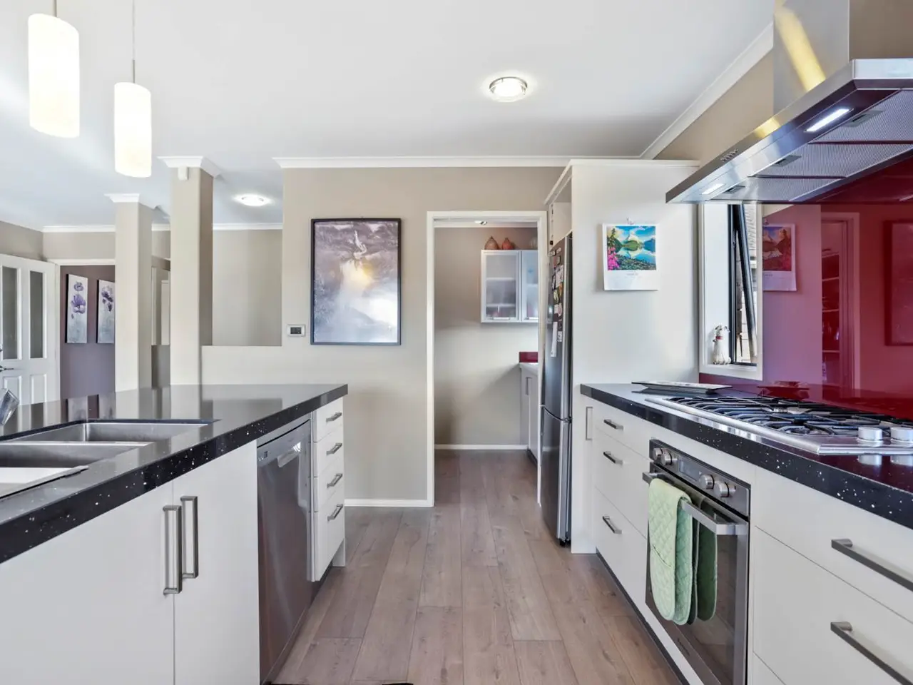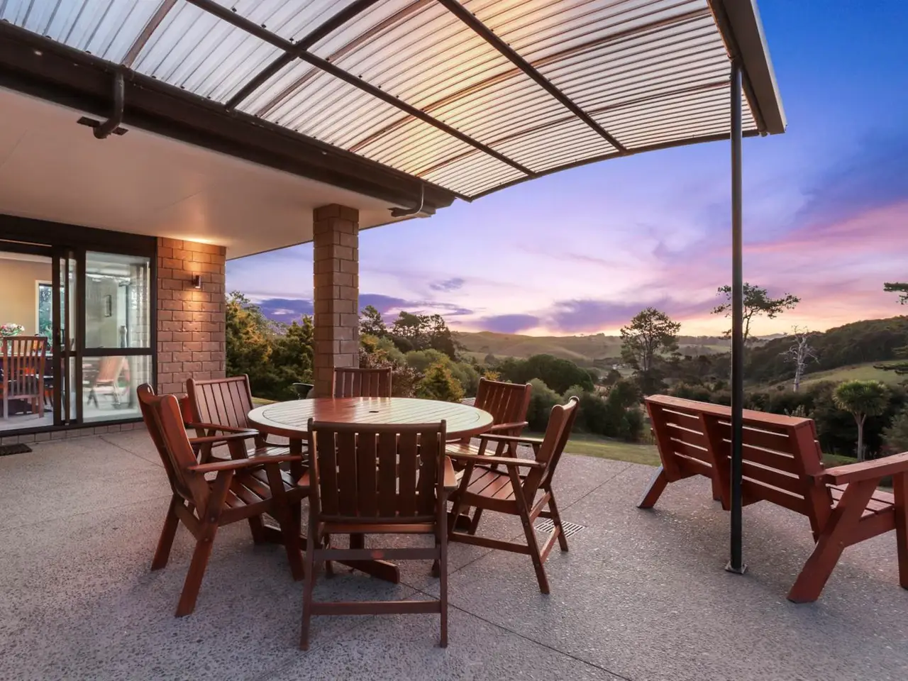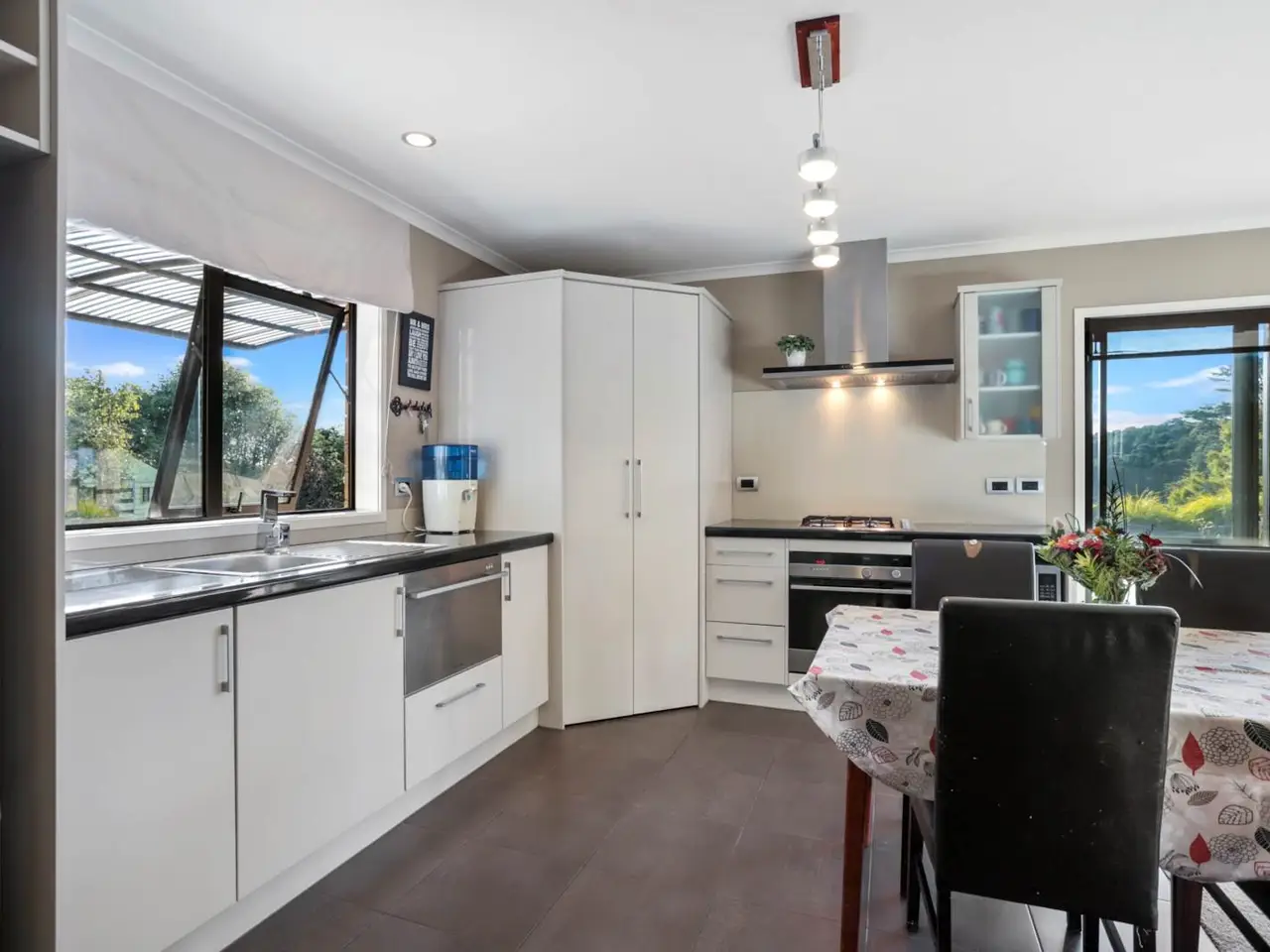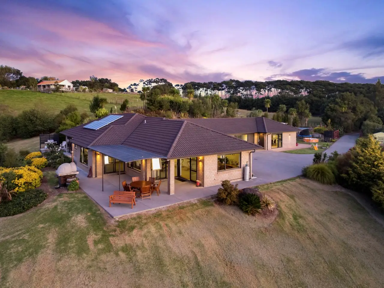 Seeking extended family living in an idyllic natural setting that chimes to the daily birdsong of Tuis & native birdlife? This contemporary 354m2 residence provides the benefit of two separate homes, offering independence & space. The main dwelling suitable for a large family is complimented with asecond (attached) minor dwelling. Perfect as a home & rental also.Enjoy modern living conveniences & sustainable living off the land, growing organic fruit & vegetables with fresh eggs for breakfast & reduce your monthly power bills, thanks to solarpower. Set on a serenely private one hectare – fully fenced, 2.5 acre wonderland, you’ll enjoy stunningly scenic panoramic views. The pad’s in place awaiting your spa pool & the outdoor pizza oven is ready for gourmet pizza! A hidden dog fence provides pet security peace of mind also.The seamless floorplan successfully merges single level living across the two homes.Primary residence:Four bedrooms including master bedroom suite, en-suite bathroom, walk in robe plus three double bedrooms & family bathroom. The open plan kitchen, living & dining room is anentertainer’s joy with plentiful space, showcased by panoramic views from all angles. An adjoining second living room is the perfect place for kicking back & relaxing in the evening. Access to the Archgola covered patio off the living is seamless for supreme outdoor living & alfresco dining.Secondary residence:One bedroom plus study: Includes master & study suitable as home office, open plan dining, kitchen & living with main bathroom. An Archgola covered patio accesses off the masterfor easy outdoor living.Located only 20 minutes from Silverdale and Westgate. Inspect today!