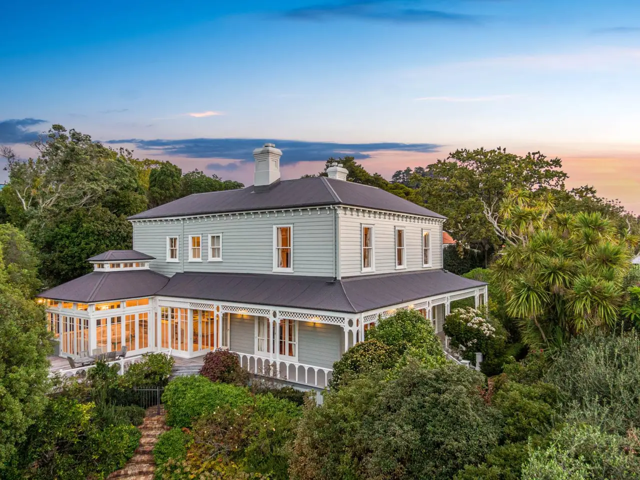 Introducing Glenholm, a majestic period residence steeped in history and nestled atop Remuera's northern slopes, offering panoramic views of the tranquil inner harbour and Hauraki Gulf islands. Dating back to 1868, this distinguished property seamlessly merges timeless elegance with contemporary living, ideal for discerning buyers seeking sophistication and comfort. Positioned in the heart of coveted Remuera village, adjacent to King's School and within the prestigious double grammar zone, Glenholm epitomizes effortless style and convenience, making it an ideal retreat for families. Boasting four spacious double bedrooms, two with en suite bathrooms, along with a generously sized family bathroom, Glenholm provides ample accommodation for family and guests alike. Additionally, a fifth bedroom serves as a self-contained studio flat, adding versatility to the living space. At the heart of the home lies a substantial kitchen and breakfast room, centred around a double Aga range cooker, perfect for culinary enthusiasts. Flowing seamlessly from this hub is a sun-drenched conservatory, offering a serene space for relaxation and entertainment, with folding doors leading out to the expansive deck. The ground floor also features an elegant dining room, opening onto the wrap-around covered veranda, and a formal lounge boasting picturesque garden views. Completing the ensemble is a generously proportioned study, providing a quiet retreat for work or contemplation. Nestled within private, sun-drenched gardens, the outdoor spaces at Glenholm offer various deck and terrace areas, bordered by lush foliage and mature trees, culminating in a sparkling swimming pool. Adjacent to the double garage, a separate study room and workshop provide additional space for hobbies or a teenage hideaway. Experience the timeless elegance of Glenholm - inquire now to secure your place in this exclusive enclave.
