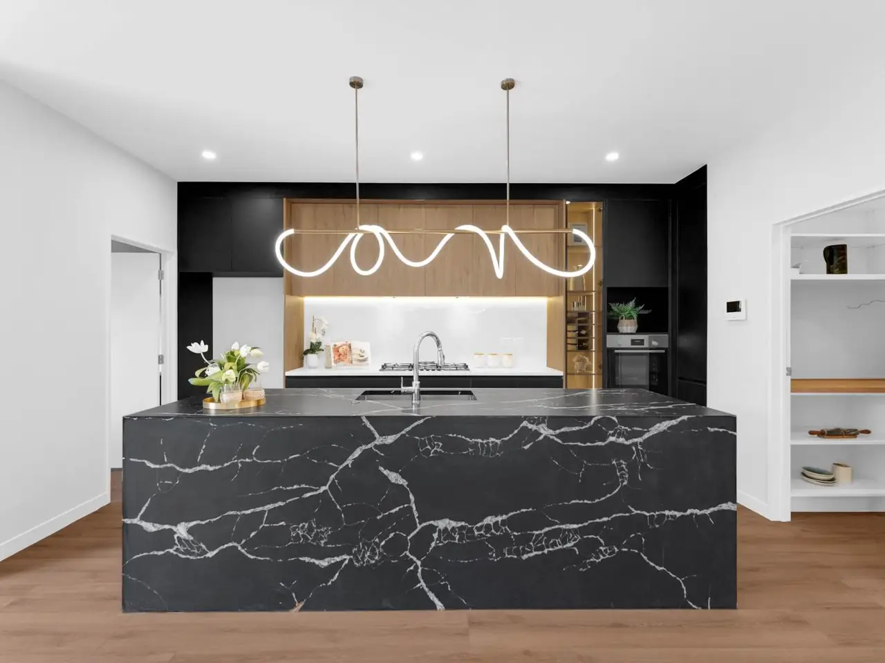 Stylish open-plan kitchen with quality appliances
