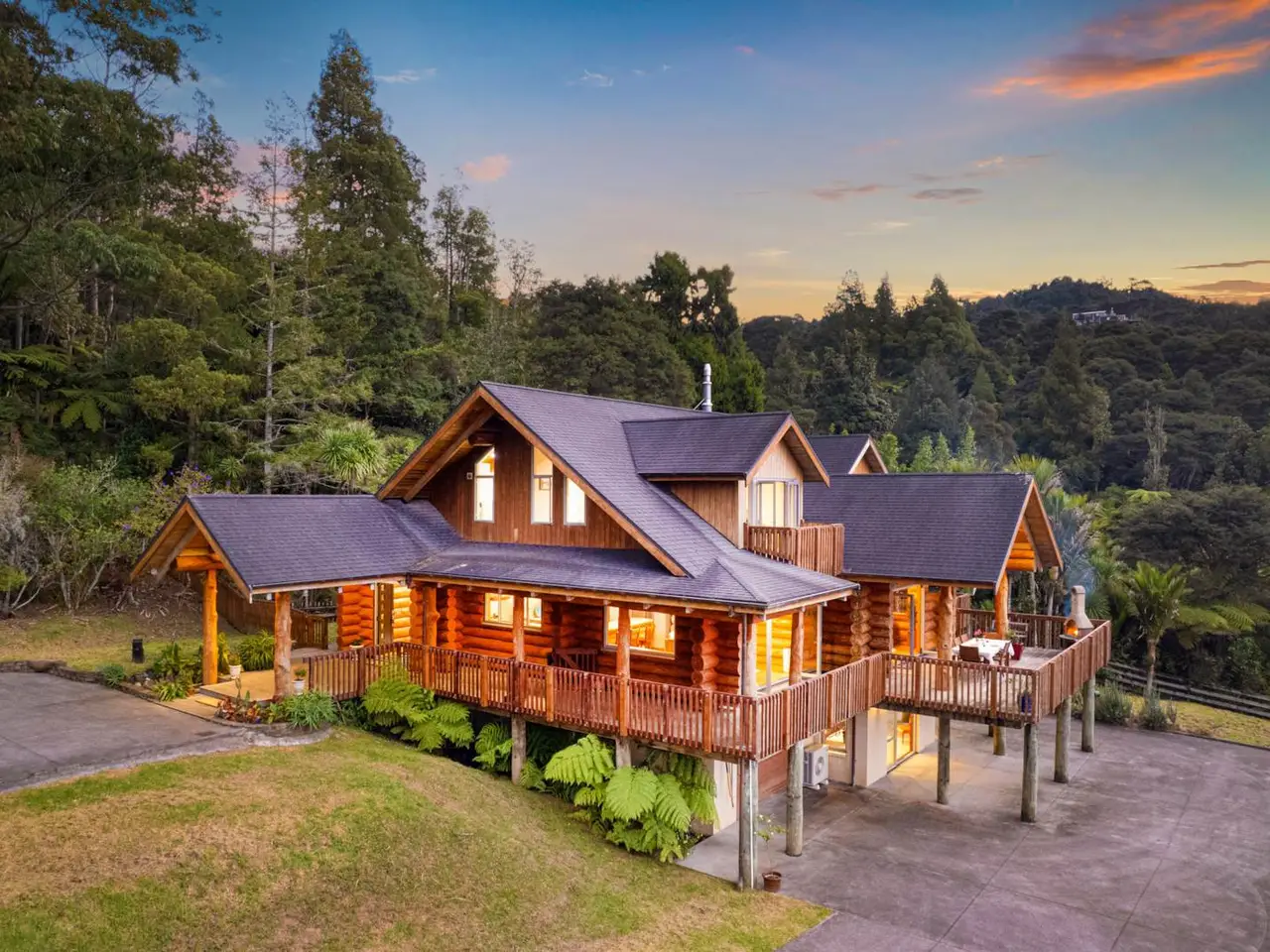 Everyday resort style living! Hand built by Master Craftsmen, this supremely appointed Grand Mountain Chalet residence exudes charm, delighting all with its luxurious comfort, undeniable warmth, stately presence & timeless iconic character. Serenely located in Oratia’s foothills on 11 acres of forest & pasture, exquisite privacy complimented by blissfully peaceful birdsong is a daily pleasure.Massive in scale, this home suits extended/multi-generational family living. Stylish entertaining is on a lavish scale. A masterclass of artisanal crafted log home architecture, the Chalet showcases the finest quality NZ grown Douglas Fir log timber & construction methods, inspired by the luxury alpine lodges of Europe’s famous ski resorts. Facing true north, the Chalet’s aspect captures spectacular rural views & enjoys all day sunshine.The Land: 11 acres includes 4 x fully fenced Grazing Paddocks, large Fruit Tree Orchard, Native Forest & Outbuildings including Hen Houses, Stable & Wood Shed.The Chalet: Nearly 500 sqm2 of living space over 3 x levels, plus 100+ sqm2 of outdoor decking. Included is a 60 sqm2 two Bedroom Sleepout, for accommodating family/friends (requires Council CCC consent & some TLC).Ground Floor: Apartment living suitable for Air B&B income or teenagers/parents. Includes 1 x Double Bedroom/Living with underfloor heating, Bathroom with UFH, Toilet & (potential) Kitchenette/Dining room option, separate Laundry/Storage, large Games/Living room/5th Bedroom & internal access single car Garage.Mid Floor: Open plan Kitchen/Dining accessing outdoors, solid timber flooring, Family Living showcasing Architectural 6m+ high Cathedral Ceiling, exposed Log Truss & triple Skylight Windows, work from home Office, 1 x Double Bedroom, Bathroom with UFH & Toilet.Upper Floor: Newly carpeted Mezzanine Lounge, 2 x Master Bedroom Suites with Decks & 2 x En-suite Bathrooms with UFH, including Luxury Spa Bath & 1 x Walk in Robe. Location is minutes away from local trains/public transport, nearby Glen Eden retail shopping & Piha surf beach. Sold by Auction if not sold prior!
