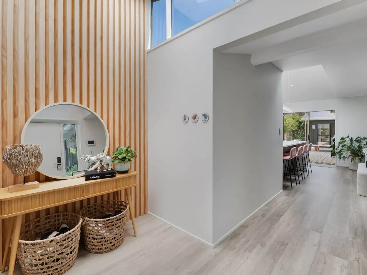 Within an easy, level stroll to the sands of Manly Beach, sits 18 Glengarry Avenue, a private sanctuary positioned in one of Manly's finest and most enchanting leafy green avenues, with its wide grassy berms, and glorious local Green, unique to this "Dress Circle" location. Completely private from the road, set on an expansive 1113 m2 (+/-) freehold site, fully fenced and gated, this residence has undergone an extensive two year transformation, remodelled and redefined into an exquisite contemporary escape, where effortless luxury flows with understated ease and quiet sophistication. Clean architectural lines and premium finishes reflect throughout, light - filled interior spaces flow seamlessly from the indoors to the outdoors, creating a safe and secure living environment both inside and out. At its heart, a state-of-the-art kitchen, family living, dining area offers an immense spacial area to relax and live, extending effortlessly into the privacy and calm of the beautiful outdoor entertaining areas to both the north and south, perfectly positioned to follow the sun throughout the changing seasons. The separate entertainment and media room provides an incredible space to enjoy movie nights with the family, a competitive game of pool or a great place for the kids and their friends to hang out, enjoying its own guest bathroom , easy flow to the outdoors and a fabulous internal storage room. The master bedroom suite is simply divine, a private and personal retreat show-casing a luxurious walk in wardrobe with dressing room, stunning ensuite bathroom, featuring custom curved shower glass, twin shower heads and custom curved mirror and wall cabinetry, with direct access to the outdoor spa…. Perfect for star gazing and relaxing at night. There are three further, beautiful double bedrooms, a separate family bathroom, and study. Three car garaging with internal entry, built to the highest of specifications and dimensions in order to accommodate the owners passion for classic cars, includes a well proportioned open plan workshop/or storage area, the ideal space to store your outdoor essentials, sporting and recreational equipment. There is an abundance of off-street parking for your boat and tractor or visiting friends and family's vehicles. Meticulous attention to detail, design and form reflects throughout every inch of this idyllic home, affording you a lifestyle of ease, quality and comfort. Be it raising your family or securing a lifestyle retirement dream, this property has been reimagined to meet your every need. There’s even your own private orchard at the end of the garden, providing fresh pears, apples, avocados, grapefruit, tangelos, persimmons, plums, oranges, lemons and limes. Manly Beach is a mecca for sailing, boating and water sports enthusiasts, with its generous sweeping northerly facing bay and easy access out into the gulf and surrounding islands. Come and experience the lifestyle and the sense of community this prized seaside neighbourhood enjoys. ** conjunctional viewings are welcomed ** Deadline sale: Closes on Thursday 2 October 2025 at 4:00PM (unless sold prior)