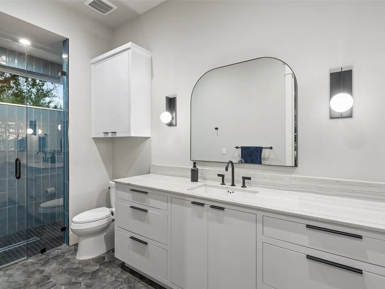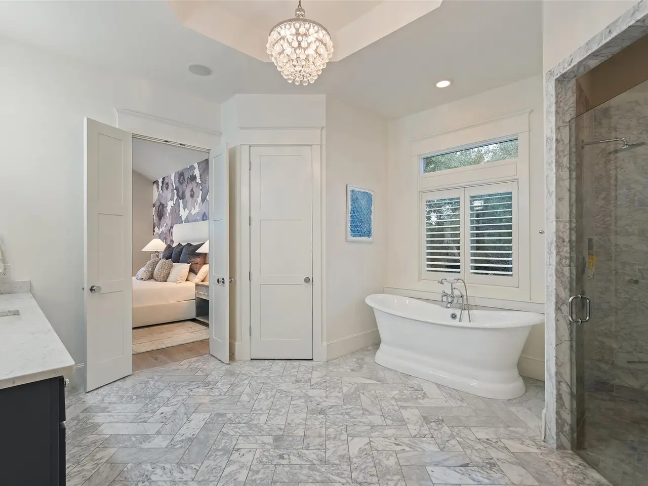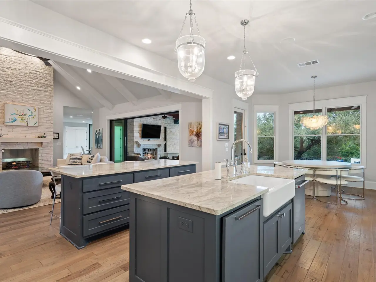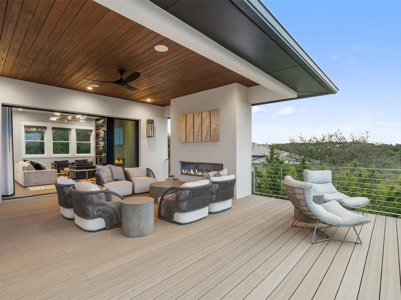 Welcome to this exceptional estate in the prestigious gated community of Verano in Barton Creek. Originally built in 2013, this home was elevated with a remarkable addition in 2023, blending timeless elegance with modern luxury. Situated on 1.087 acres of lushly landscaped grounds, this spacious 6-bedroom, 5 full bath, and 2 half bath residence offers an unparalleled living experience. Every detail of this home is designed for comfort and sophistication, featuring tall ceilings, expansive living areas, and state-of-the-art technology throughout. The main level boasts six generously sized bedrooms, an elegant media room, a dedicated office, and multiple dining and living spaces with 4 fireplaces, perfect for entertaining or family gatherings. Upstairs, an entertainment room with a private balcony provides breathtaking views of downtown. Step outside into a resort-style backyard, complete with a sparkling pool, relaxing spa, outdoor kitchen, and cozy fire pit, all designed for year-round enjoyment. The invisible fence and iron fencing provide both security and seamless aesthetics, while the Tesla charger adds modern convenience. Nestled in the heart of Barton Creek, this wired-to-the-max smart home offers both privacy and proximity to top-tier amenities. Experience the best of Austin living in this one-of-a-kind estate--schedule your private tour today!