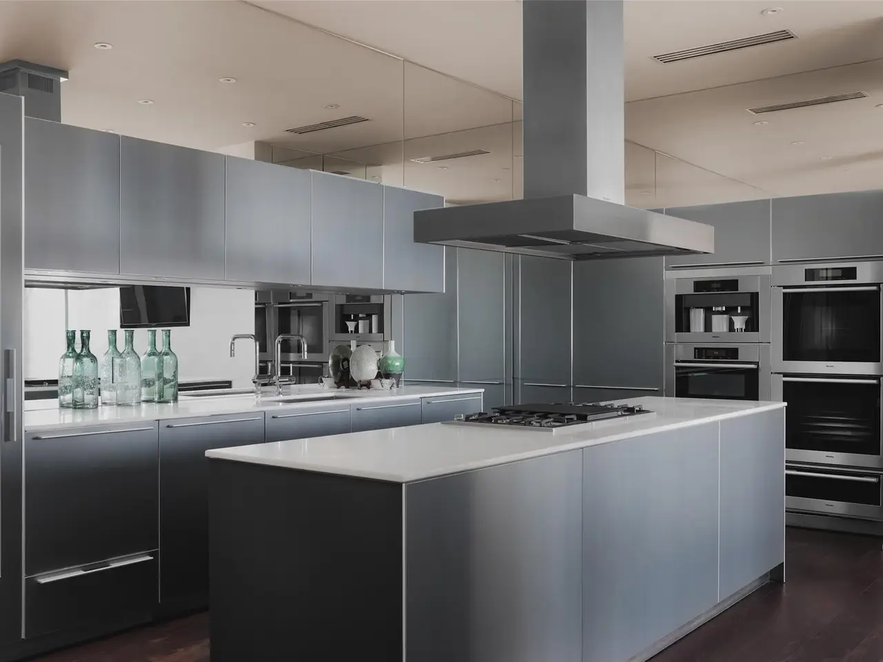 • Custom cabinetry and mirrored backsplash
