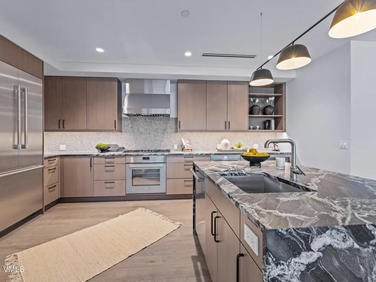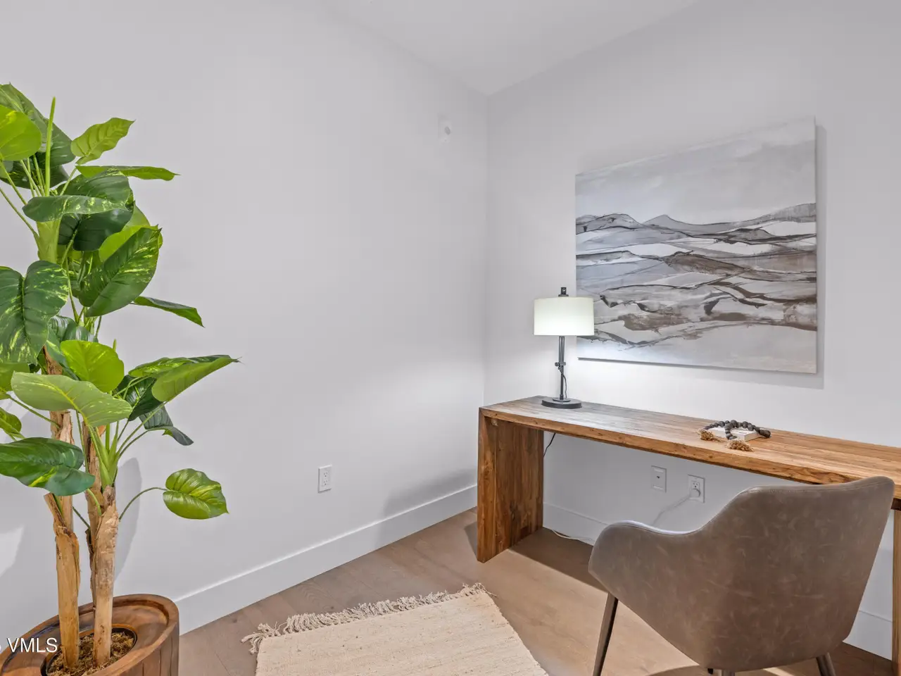Situated on the top floor with cathedral ceilings in the living area, this spacious 2-bedroom + office, 2-bath residence features a 120 sq ft patio overlooking the Springs Outdoor Oasis & Pioneer Plunge. The contemporary layout is designed for comfort, livability, and style, offering a spacious open floor plan with 9-foot ceilings, Arrigoni hardwood floors, stainless steel kitchen appliances, a walk-in closet, owner's storage, and a cutting-edge finish package. Includes one unassigned parking space and access to several guest spaces. Frontgate | Avon is a new, astutely appointed, amenity-rich development featuring a masterfully designed four-story condominium building with 75 residences and 9 townhomes. Located adjacent to the entrance of Beaver Creek Resort, this limited collection of modern mountain properties is thoughtfully integrated into the natural environment. Envisioned to bring residents closer to nature, Frontgate | Avon offers The Springs Outdoor Oasis & Pioneer Plunge-a year-round outdoor bromine pool, water slide, and 15- and 35-person hot tubs-along with a Mountainside Courtyard with fire pits, outdoor grills, and gathering spaces. Additional amenities include community bikes and e-bikes, two sports simulators, a top-tier fitness center with an outdoor mountainside workout area, and a game room. On-site conveniences include dedicated shuttles to Beaver Creek and Vail, ski and boot lockers, underground heated parking, EV charging, a car wash, dog wash, property management services, and a grab-and-go market.