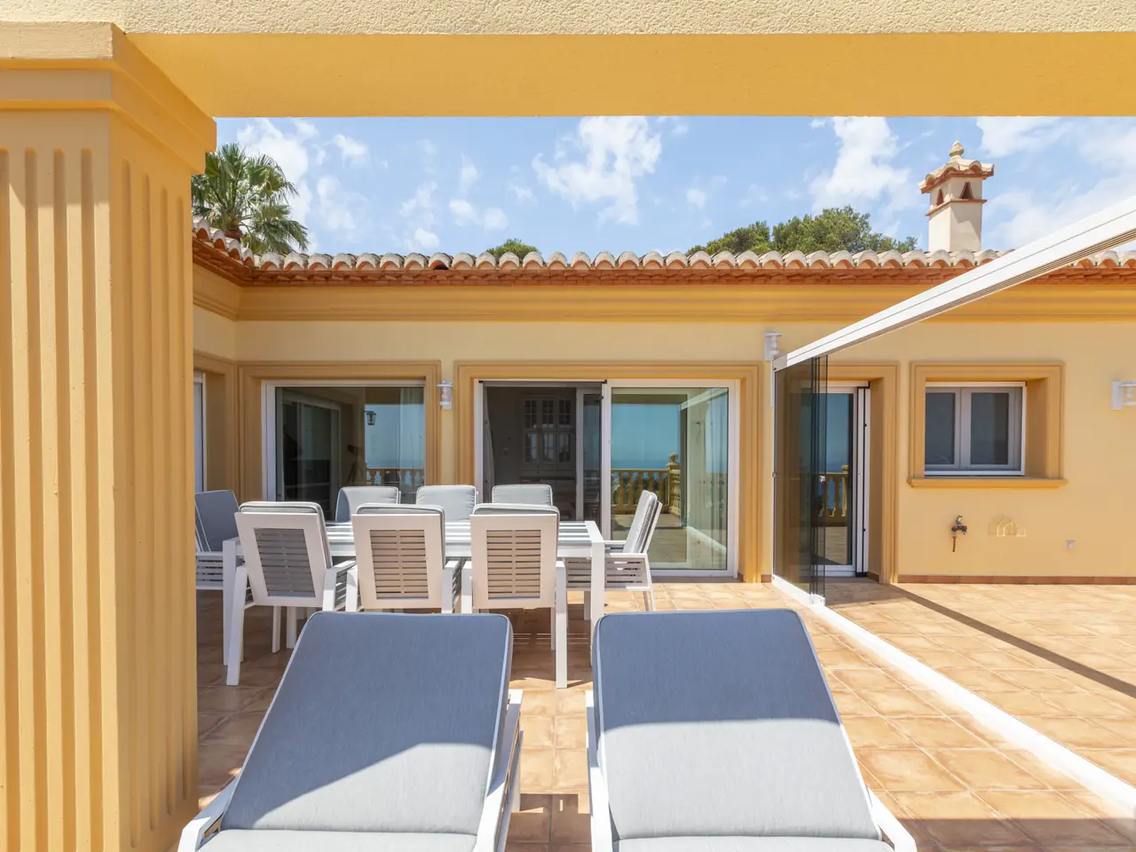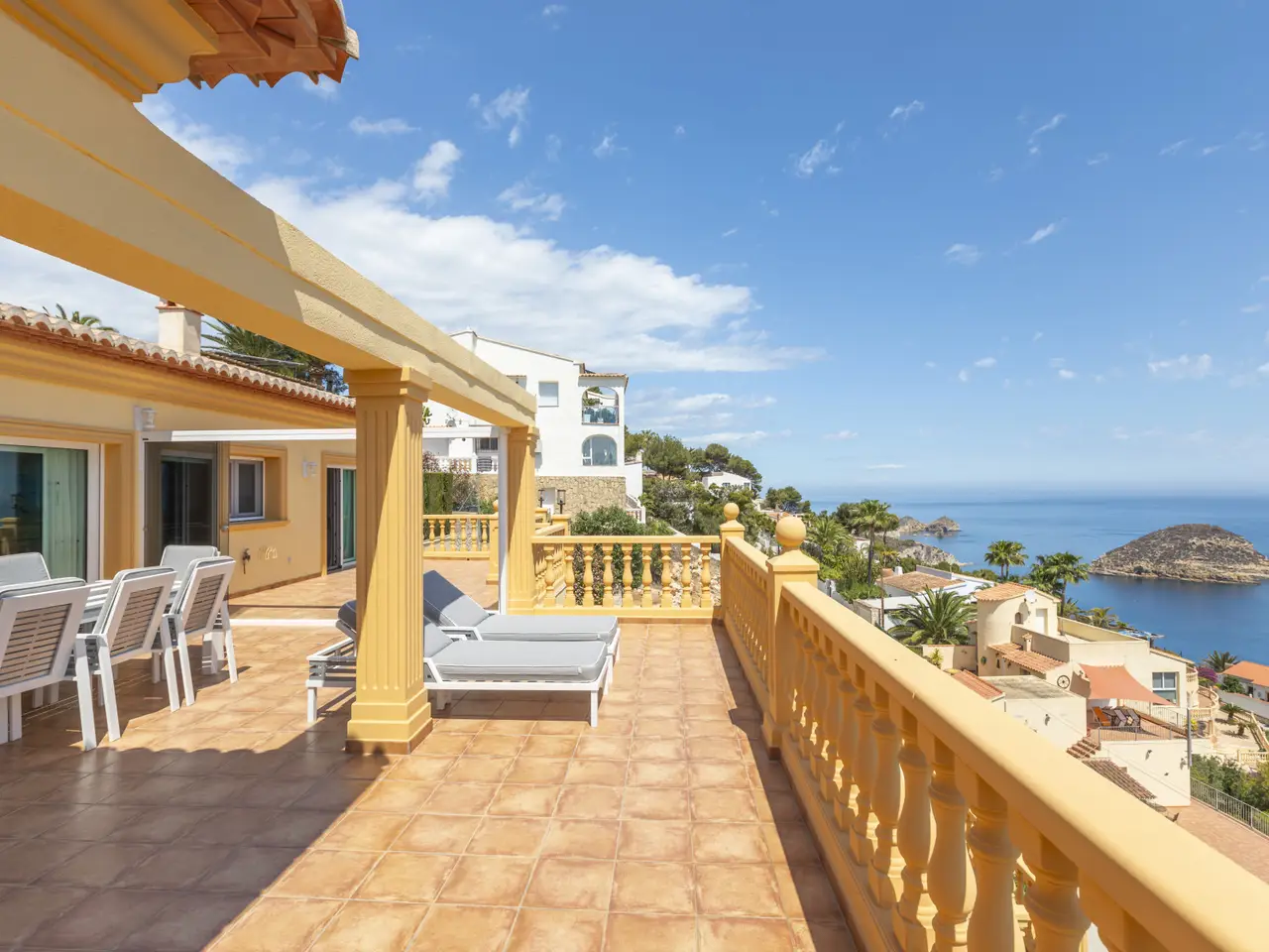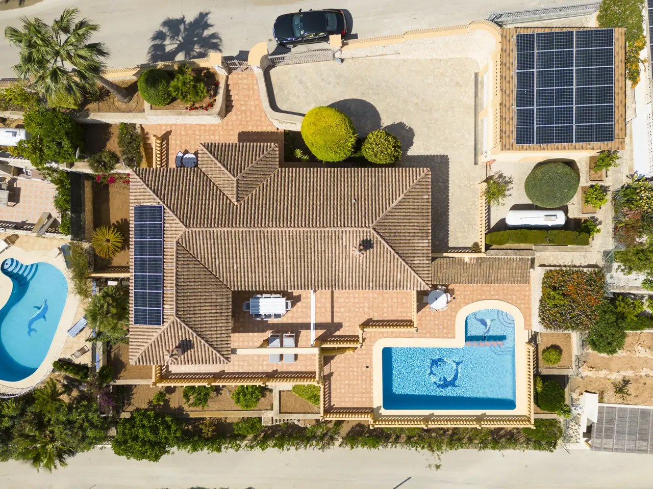 Cozy property with sea views in a quiet area with large terrace. The house is distributed on two levels. The main floor is composed of living room with fireplace, kitchenette equipped with access to a spacious terrace overlooking the island of Portichol, courtesy toilet and the master bedroom with ensuite bathroom. On the ground floor we find two double bedrooms with wardrobes, one full bathroom, laundry area and storage room and separate apartment with living room, kitchenette and a double bedroom with ensuite bathroom. From this level you can access the pool area where you will find a barbecue, a toilet and outdoor shower. It has a garage for two cars, parking area and garden. It has underfloor heating by heat pump, air conditioning in the bedrooms, installation of solar panels, alarm system and surveillance cameras.