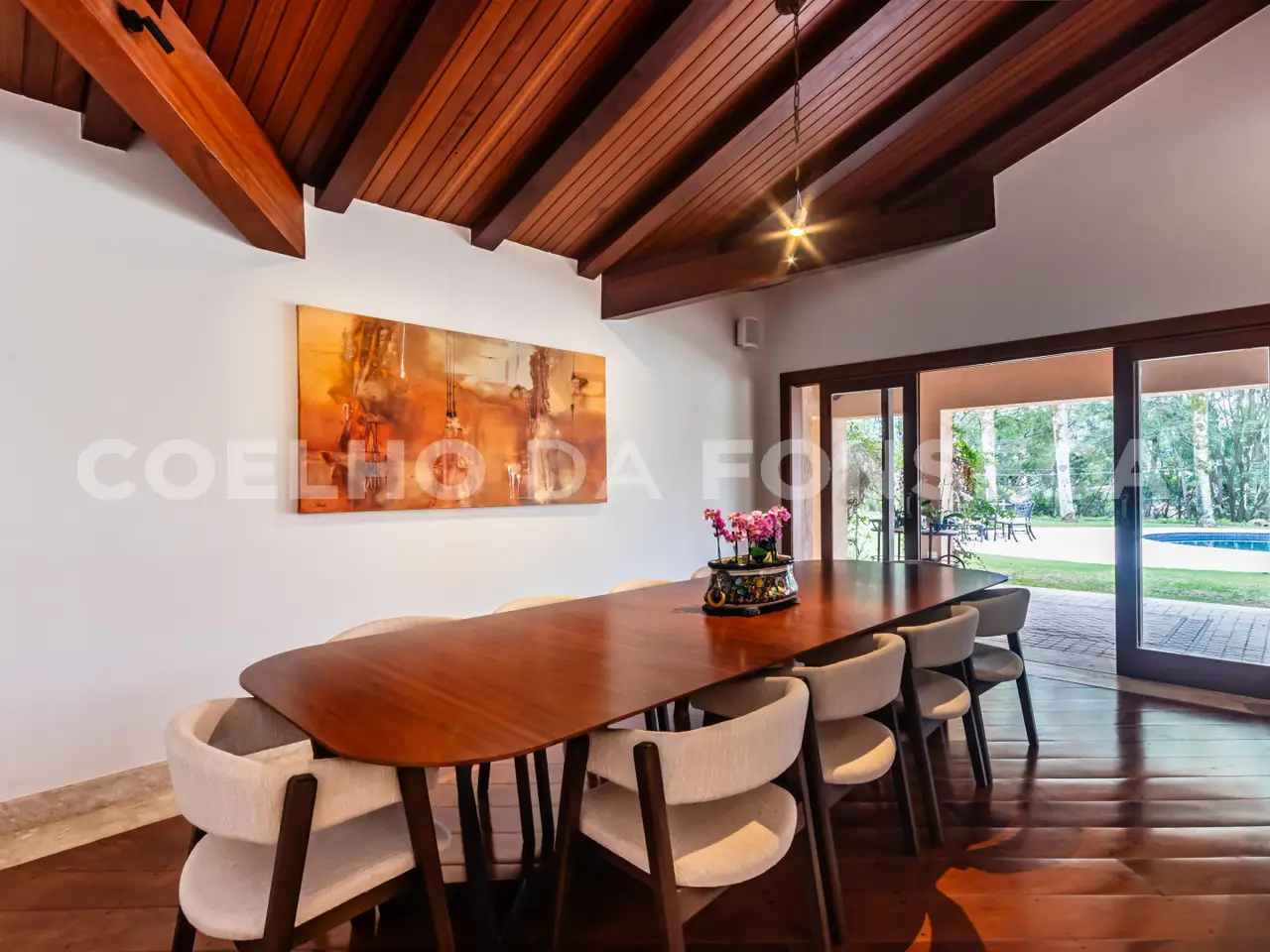 Located in one of the city's most exclusive and centrally located areas, this property impresses with its impeccable maintenance and stunning views. With a large private lot, this semi-story residence features a unique layout, with only the master suite located on the upper floor. On the ground floor, you'll find three suites with fine, light wood floors, while all other rooms feature travertine marble. The quality of the materials and finishes is simply exceptional. Furthermore, the house boasts a home theater, gym, dry and wet saunas, a full gourmet area, a stunning French garden, and a large lawn, providing comfort and warmth. Don't miss the opportunity to see this incredible property. Schedule a viewing and be amazed! House in the TAMBORÉ I condominium, with 923m² of built area, 4 bedrooms, 4 suites, 10 parking spaces, 8 bathrooms, swimming pool, office, sauna, air conditioning, maid's quarters, balcony, solar water heater, double-height ceilings, and a single-story house.