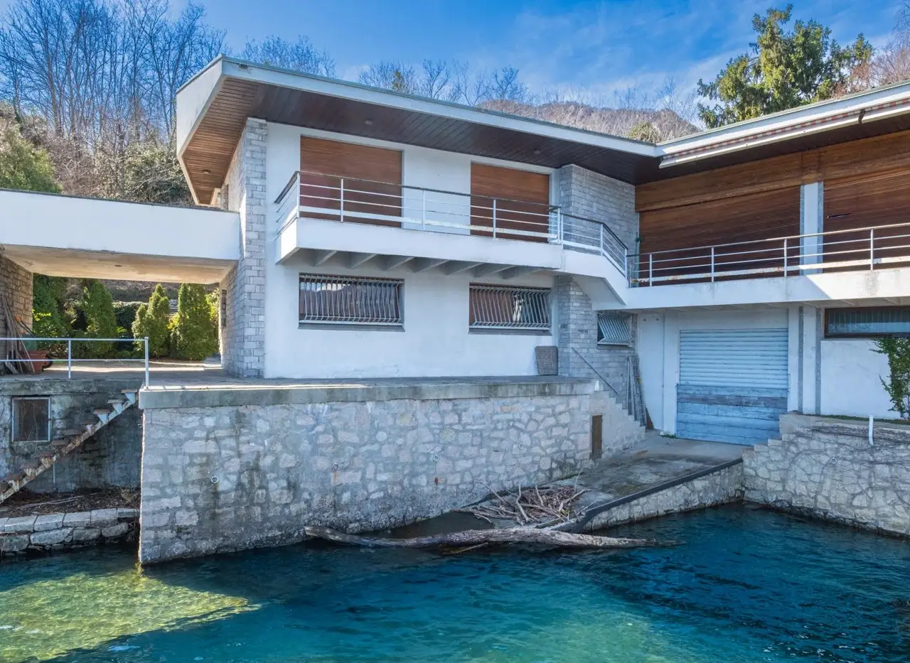 Modern villa from the 1950s for sale in Italy Baveno, pieds dans l'eau, directly on the Piedmontese shore of Lake Maggiore. This prestigious villa represents a unique opportunity for those who want an unrepeatable location, in one of the most beautiful areas of Lake Maggiore. From this position you can reach the sandy beaches of the Feriolo area with your own motorboat or sail around the Borromean islands. The construction dates back to the 1950s, designed by the architect Cracchi, and subsequently renovated in 1987 by the famous architect Luigi Caccia Dominioni. The villa is surrounded by a garden of over 1,000 square metres, planted with lush plants typical of Lake Maggiore, which give wonderful flowering. The villa is on two floors, with a surface area of 350 m2, this prestigious villa offers large spaces, divided very rationally. The large terraces on several levels allow you to enjoy the villa outdoors during the summer. Inserted in an exceptional landscape panorama, with a breathtaking view of Lake Maggiore and the surrounding mountains, the villa is surrounded by a well-kept garden, making it a true oasis of peace and serenity in the open air. This purchase opportunity is the ideal solution for those who have a motorboat, in fact the villa has a dock. Next door you can use the beach. Internally, the salient feature is the large windows in the living room which offer a broad view of Lake Maggiore. The living room with fireplace is equipped with a fireplace. Continuing there is the large kitchen, two bedrooms and two. Downstairs there are two more bedrooms with two bathrooms and a laundry room. In addition to the dock, the basement floor houses the boiler room and cellars. Access to the dock by motorboat is via a pier. There are four covered parking spaces as well as the possibility of parking other cars. Unique property of its kind, ideal for those seeking privacy, those who want free access with their own boat to the wonders of Lake Maggiore and the Borromeo Gulf. Property in need of renovation works.