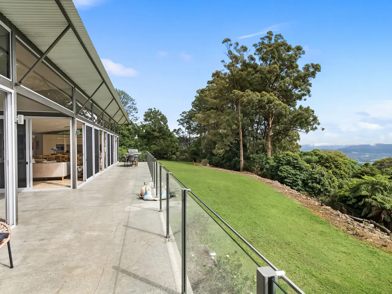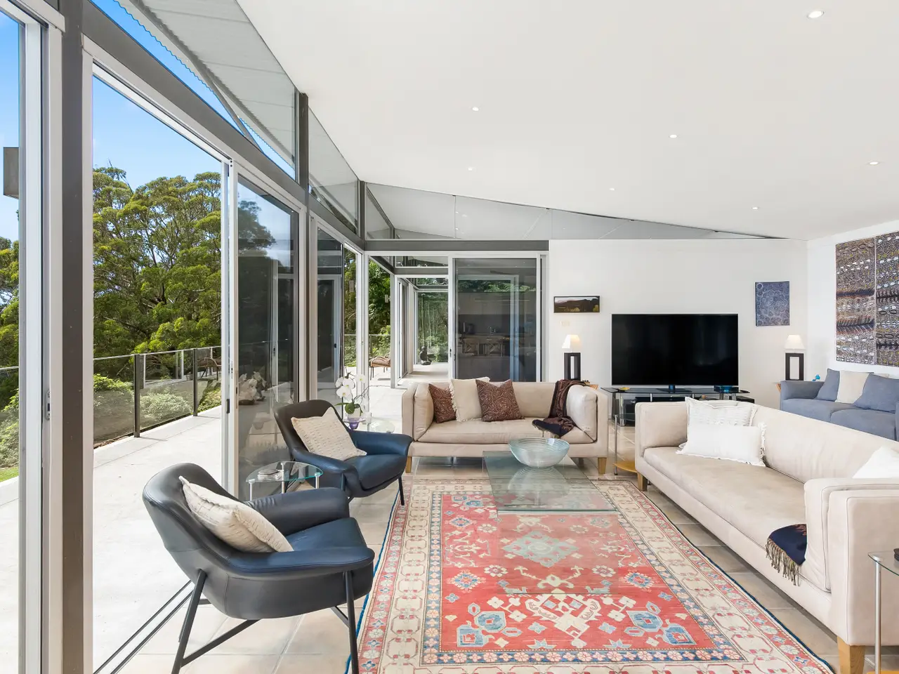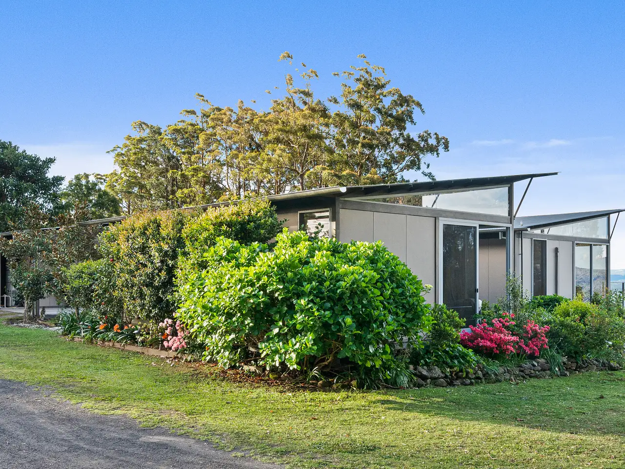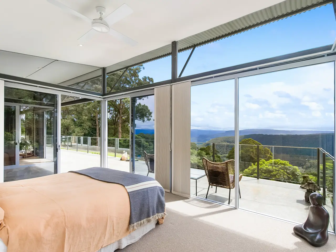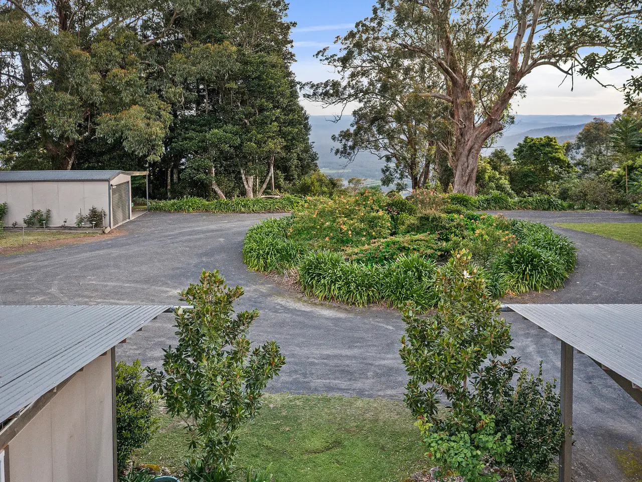 Rising high above the valley, this pavilion-style retreat reveals complete privacy and breathtaking 360-degree views spanning the escarpments, rolling countryside, and the distant waters of Jervis Bay and the Shoalhaven. Designed as an atrium of light, the home's walls of glass sliding doors dissolve the boundaries between indoors and out, framing an ever-changing panorama from sunrise to sunset. Facing northeast and above the frost line, the property enjoys full winter sun for year round warmth. The open-plan main pavilion flows from the sleek kitchen to the dining and lounge spaces, all connecting to surrounding walkways. All three bedrooms each occupy private pavilions complete with ensuite bathrooms, underfloor heating, and reverse-cycle air conditioning, while the main bedroom enjoys a front-row seat to the valley vistas. Beyond the residence, the almost three-hectare estate is enveloped by ancient eucalypts, towering Moreton Bay figs, and flourishing gardens, featuring rose beds, a productive orchard, and banks of gardenias, camellias, and hydrangeas. Positioned at the end of Tourist Road, this estate offers privacy without isolation, with Berry and Kangaroo Valley both just 15 minutes away and Bowral reachable in 40. Its elevated position delivers spectacular scenery in every direction, creating a truly unique and tranquil retreat. • Pavilion-style home on 2.79 hectares with 360-degree valley-to-coast views • Walls of glass sliding doors create a unique indoor-outdoor connection • North-east facing and above the frost line, enjoying full winter sun • Open-plan main pavilion with kitchen, dining, and lounge, with a fireplace • Three private bedroom pavilions, each with an ensuite • Potential for two more rooms to be created under the roof line • Underfloor heating and reverse-cycle air conditioning in every room • Convenient office space, carport, and shed for added functionality.