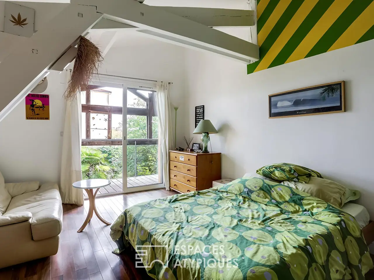 Nestled in a discreet cul-de-sac, close to the Bagatelle Hospital, this 360 sqm loft house offers an exceptional living environment, combining space, comfort and privacy. From the entrance, an elegant paved courtyard leads to a large double garage and the main door of the house. The living room, impressive with its 108 sqm, seduces with its generous volumes and its original wooden frame. This space bathed in light accommodates a warm living room with fireplace, a convivial dining room and a fully equipped American kitchen. On each side, the house opens to the East onto a landscaped garden of 90 sqm and to the West onto a wooden terrace with a heated salt pool of 9×4 m, a solarium and a sauna, inviting you to relax in all seasons. On the ground floor, the master suite benefits from a custom-made dressing room and an elegant bathroom with bathtub and shower, all opening onto a private terrace. An independent studio, perfect for entertaining or teleworking, completes this level, with a wine cellar, a cinema room and a laundry room. Upstairs, a beautiful mezzanine offers an office space, while three bedrooms, each with their own shower room and private balcony, guarantee comfort and privacy for the whole family. Just 10 minutes from Gare Saint-Jean, close to the shops of Begles and Bordeaux, a rare address for a privileged family life, between elegance and serenity. ENERGY CLASS: C / CLIMATE CLASS: C. Estimated average amount of annual energy expenditure for standard use, based on energy prices for the year 2023: between EUR4,190 and EUR5,730 Additional information * 8 rooms * 5 bedrooms * 1 bathroom * 4 shower rooms * 1 floor in the building * Outdoor space : 700 SQM * Parking : 2 parking spaces * Property tax : 6 000 € Energy Performance Certificate Primary energy consumption c : 174 kWh/m2.an High performance housing