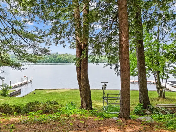 GREAT POND Location, location, location - you won't find a better spot on the lake than this! Close to Belgrade Village by boat or car, this exceptional piece of waterfront property is ideally situated to take advantage of western exposure for evening sunsets from a grassy level lakeside lawn with sandy beach area, deep water frontage, boat launch and two private docks perfect for all your water sport toys. The home offers a large grandfathered footprint just steps to the water along with a spacious garage - both offering a ton of potential for you to make your dreams come true! The entry opens to a grand room with a wood burning fireplace and double balconies overlooking the lake. Below on the ground level is a den with a fireplace that opens to the lakeside lawn, kitchen with dining area, full bath and storage garage for your boats and water toys. On the upper level are four bedrooms, full bath and a spacious primary ensuite with lakeside balcony, private bath, sitting area and double closets. Embrace the period design details or start new - this well-built home offers you a unique opportunity to explore your creativity and see it come to life!