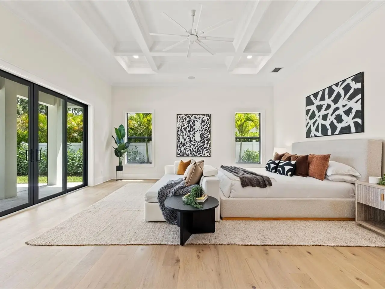 Move straight into an untouched masterpiece overlooking the 5th fairway of the prestigious Pelican Golf Club, widely regarded as Pinellas County’s finest private course. Completed in 2024 and never occupied, this executive residence pairs crisp modern architecture with warm, livable spaces, creating an ideal setting for everyday comfort, grand entertaining, and multigenerational living. A dramatic great room welcomes you with oak floors, 14-foot coffered ceilings, and an entire wall of glass that frames manicured fairways and bathes the interior in natural light. The adjacent chef’s kitchen is a true showpiece, anchored by dual center islands, bespoke cabinetry, dramatic marble countertops, Kraus workstation sinks, Waterworks fixtures, and professional-grade appliances that are equally suited to casual breakfasts or catered soirées, while the open dining and living areas flow seamlessly to the outdoors through hurricane-rated sliders. The primary suite is a private sanctuary with two generous walk-in closets and a spa-inspired bath featuring dual oversized rain shower heads, a deep soaking tub, and dual vanities with a dedicated cosmetics station. A split-bedroom layout ensures privacy for family and guests, and a versatile bonus room can serve as an executive study, formal dining room, or fifth bedroom. Everyday convenience is elevated by two full sets of washers and dryers in the interior laundry room, and climate-controlled storage in the oversized two-car garage; a separate air-conditioned single garage, about 375 square feet, that can easily accommodate a third vehicle or golf cart. Outback, resort living awaits: a salt-water pool and spa, motorized retractable screens, and a gas fireplace create an effortless venue for sunset cocktails beside the fairway. A 26kW whole-house generator, concrete-block construction, impact glass, and high-efficiency HVAC deliver peace of mind and low operating costs. Minutes from Clearwater’s beaches, marinas, and dining—yet worlds away in privacy and prestige, this brand-new residence offers flawless finishes, cutting-edge systems, and an unrivaled golf-course backdrop. Virtual tour and floor plans are available upon request.