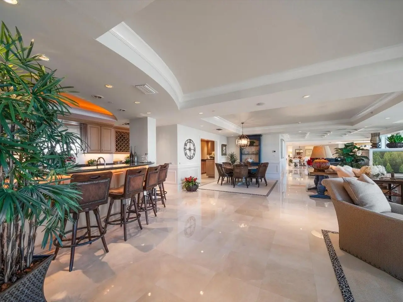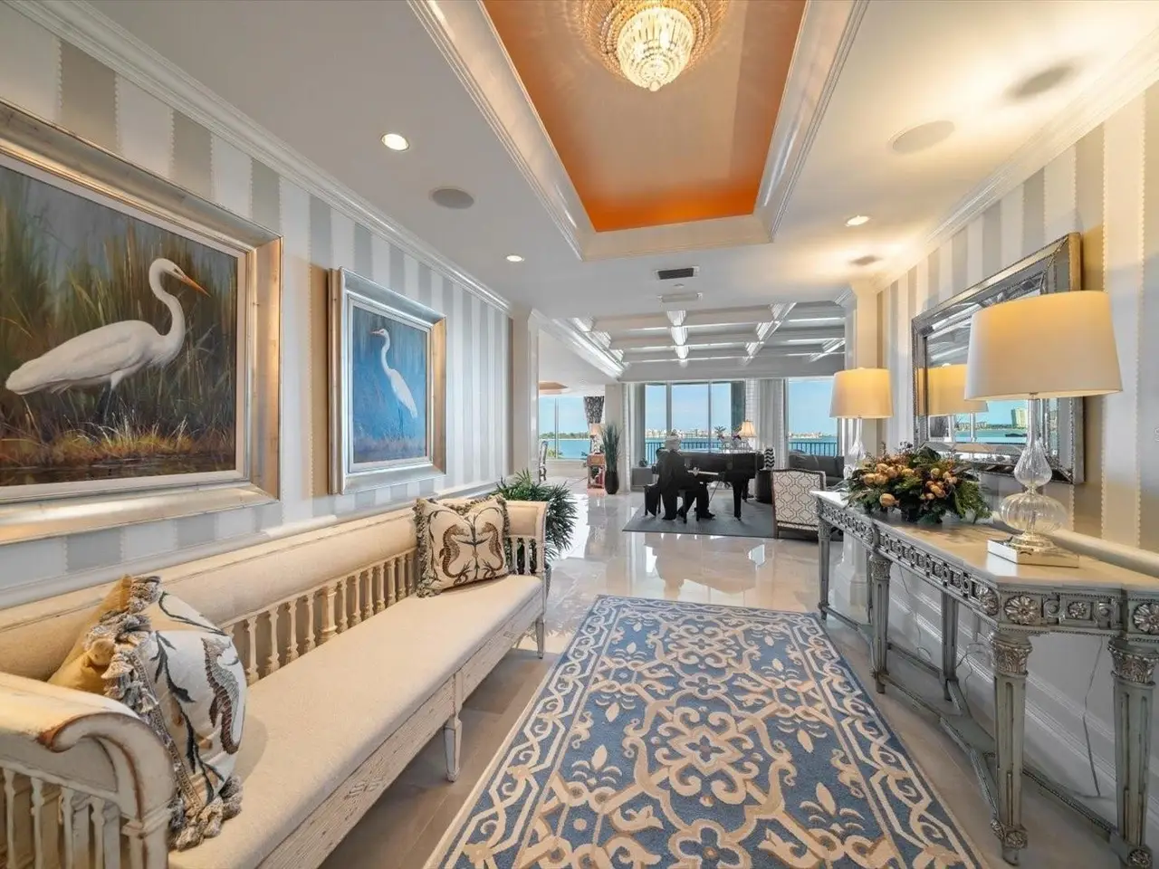 A rare FULL FLOOR DOMAIN! Sophisticated private condominium encompassing the entire sixth floor of Seaside III-this is the best of resort-style living, perfected, personalized and offering elevator to foyer exclusivity unlike any other property within the grounds of the very desirable Belleair Country Club. Discover the pinnacle of luxury living in this remarkable residence showcasing sweeping views from the Intracoastal Waterway to the Gulf waters. Exquisitely furnished and spanning over 6,000 square feet, the entire floor is a seamless combination of maximum space and minimal responsibility providing a superior quality of life without the burdens of homeownership. Designed with both elegance and comfort in mind, the floor plan features formal and informal living areas ideal for entertaining or quiet enjoyment. The chef's dream kitchen is equipped for high-level culinary experiences. With efficient organizational features, high end appliances, custom built-ins, impressive center island, butler’s pantry, and abundant storage, the area serves as a focal point for casual gatherings or creation of exceptional meals. The primary suite is secluded from the main living areas creating a peaceful welcoming retreat with its gracious sitting area. Enjoy the dressing areas and extensive customized closets. A luxurious bathroom complete with a spacious walk-in shower and separate soaking tub is inviting. On the opposite end of the primary suite, three guest suites, each with private baths and generous closets, provide refined accommodations for guests or extended family allowing for additional privacy. Throughout the home, custom millwork, coffered ceilings, signature lighting, artistically etched glass doors, marble flooring, and an impressive fully equipped bar area reflect fine craftsmanship. Floor-to-ceiling windows and doors, and wraparound balconies capture endless water views. This is an immaculately finished property where each item from furnishings to accessories has been selected by a top-tier interior designer-custom made and custom sized creating a refined and gracious retreat. Enjoy private, secure living with a 24-hour guarded gate, secured building entry, two under-building parking spaces, and additional storage. Located in a non-evacuation zone, this residence offers peace of mind and a truly carefree lifestyle—no worries with power failure or water intrusion during storm seasons. Residents of Belleair Country Club enjoy exclusive access to two championship 18-hole golf courses, pickleball and tennis courts, croquet, a fitness center, aquatic programs, boat slips, and fine dining—all within this premier coastal community. A rare offering that embodies the essence of refined living in a fabulous country club environment, this is a key departure from a single-family home-ideal for seasonal residents or frequent travelers.