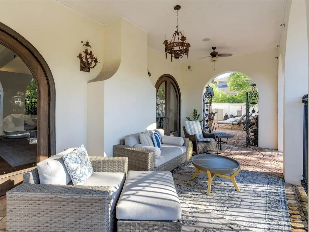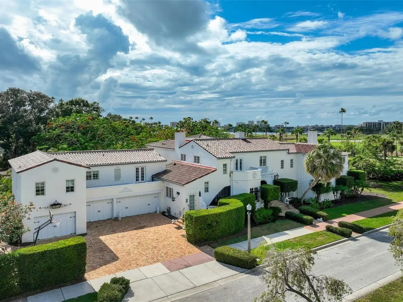 This sprawling estate in Belleair is an extraordinary Mediterranean villa steeped in history and elegance. Located across the street from the Belleair Country Club Golf Course. The property spans nearly an acre and has been restored to preserve the charm and grandeur of its 1920s origins while incorporating modern updates that ensure comfort and luxury. It was once the home of Lucius Ruder, a key figure in Belleair’s history and the flamboyant mayor during the Depression era. His contributions to the area include donating the beach south of the Clearwater Pier to the city, and his influence is reflected in the estate’s design and the lush gardens he cultivated. The home’s grand 7,193-square-foot layout exudes old-world charm with rich hardwood floors, hand-painted coved ceilings, terracotta tile floors, and stunning light fixtures. A majestic foyer welcomes guests with custom stained-glass doors, while the expansive living areas—such as the grand room with a stone fireplace and beamed ceiling—are ideal for both large gatherings and intimate moments. The artistic Cuban tile flooring in the recreation room and the extensive Italian-style loggia outside elevate the home’s beauty. The kitchen is a masterpiece in itself, with a $250,000 redesign featuring top-of-the-line appliances like Wolf ranges and Sub-Zero refrigeration, custom cabinetry, and dual prep areas—ideal for any culinary enthusiast. The home is equipped for both relaxation and entertainment, with multiple courtyards, a gazebo, lush gardens, and a poolside kitchen perfect for year-round gatherings. The master suite serves as a peaceful retreat with a private lounging area, a spa-like bath with a soaking tub and separate shower, and a walk-in closet with a dressing room. Guests are offered privacy in the guest wing above the garage, which includes two ensuite bedrooms and a rooftop terrace. The estate is fortified with hurricane-impact windows and doors, ensuring safety and longevity, while the gated motor court and roof replacement in 2019 add to its modern functionality. Situated in an exclusive neighborhood and across the street from Belleair Country Club, while minutes from Clearwater Harbor, and Morton Plant Hospital, the Ruder Estate combines history, luxury, and functionality in one remarkable package.