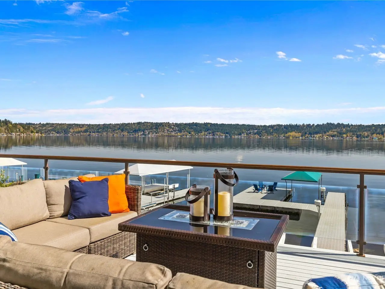 Tucked on a quiet lakeside lane with 90 feet of private Lake Sammamish shoreline, this NW contemporary retreat is a study in light, style, and serenity. Two-story windows and skylights fill the home with natural light, from the great room to the airy sunroom where lake breezes drift through the open NanaWall. Swim off the expansive dock, cast a line in the cove, or retreat to the cozy theater with wet bar. Evenings invite sunset dinners on the full-width deck, followed by a soak in the secluded hot tub tucked amidst lush landscaping. Upstairs, the serene primary suite offers storm-watching solitude and sweeping views. Extensively updated and thoughtfully designed - with rare 8-car parking - this is active waterfront living, beautifully refined.