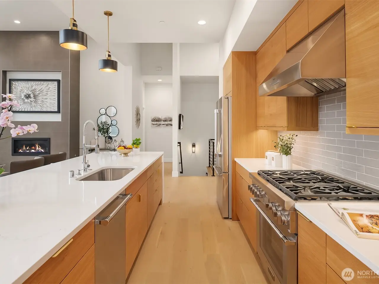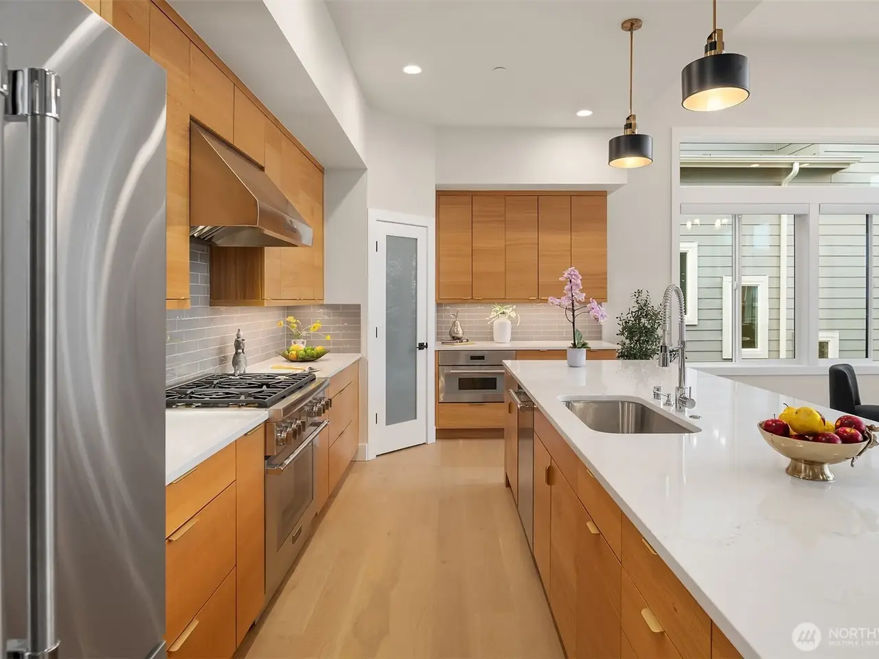 Designer chef's kitchen with waterfall island
