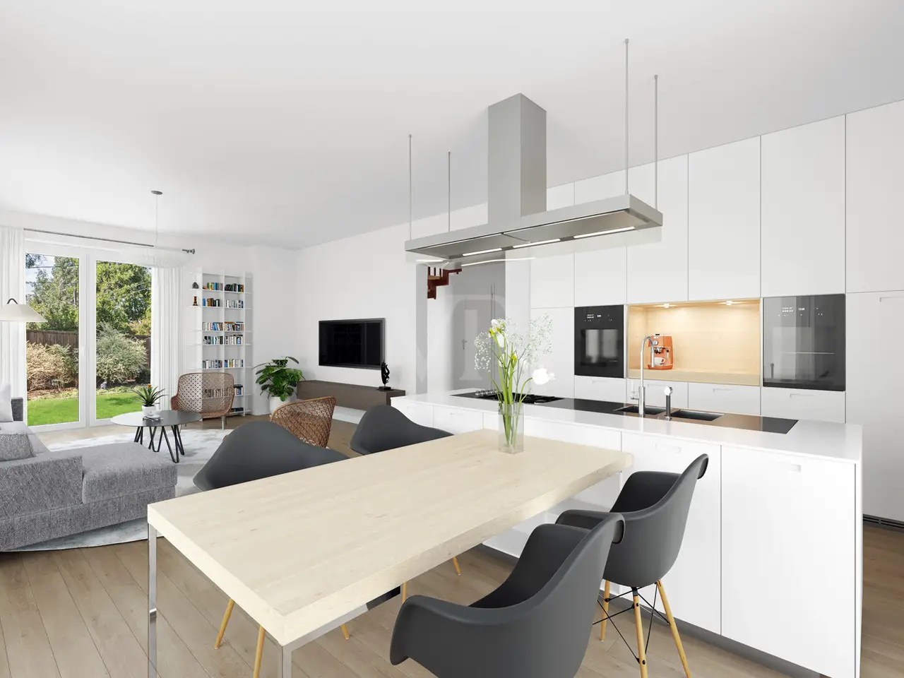 Open-plan kitchen with garden terraces