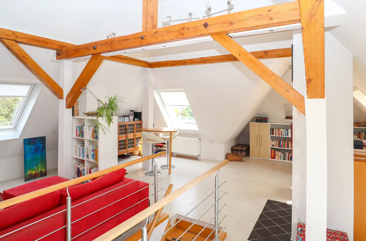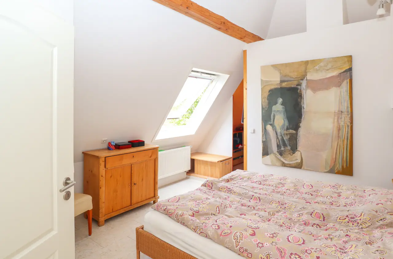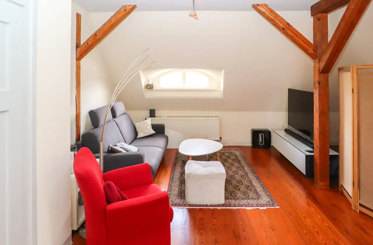 Stylish apartment in a historic villa with a large garden in a quiet location. This unique apartment extends over two floors in a magnificent, historic villa and offers a harmonious combination of classic elegance and modern luxury. When you enter the apartment, you are greeted by a stylish living area that exudes a cozy atmosphere with old details and a fireplace and invites you to spend cozy evenings. The spacious kitchen is well equipped. Here you will find enough space for your culinary creations. The adjoining living / dining area offers space for convivial meals with family and friends. The apartment has several rooms that can be used flexibly as a bedroom, study or guest room. A whirlpool in one of the two modern bathrooms is ideal for wellness lovers and invites you to relax. There is also a guest toilet. The spacious garden is a paradise. Enjoy the peace and beauty of nature by the idyllic pond. The large outdoor seating and barbecue area is perfect for summer parties and relaxed evenings under the open sky. This apartment offers you a unique living experience in an exclusive location. Experience the perfect mix of historical flair and modern comfort.