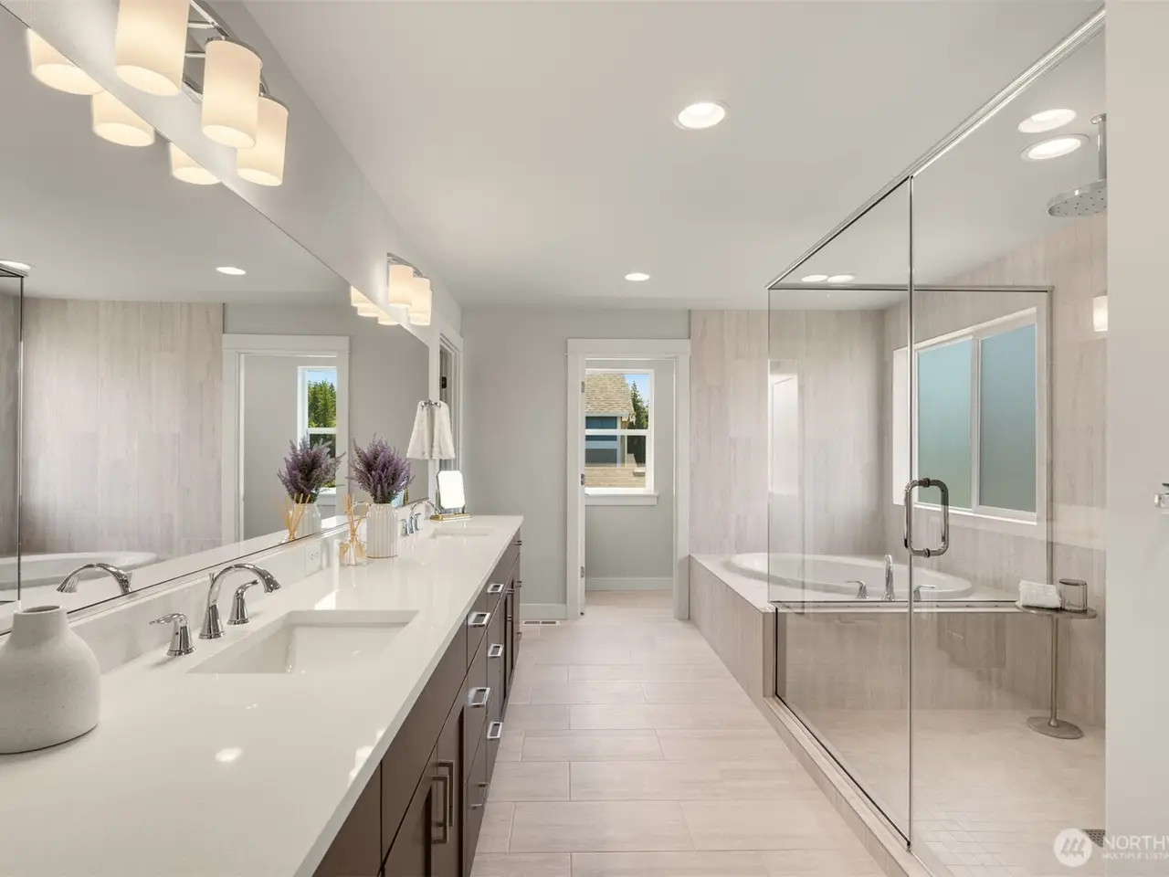 MOVE-IN READY! The final opportunity to own an Oakridge Homes masterpiece in the gated Enclave at Ten Trails. Spanning 4,819 SF this luxury home features a fully finished daylight basement w/ 2 bedrooms, a full bath & spacious family room opening to the backyard--perfect for guests or multi-gen living. A main-floor Junior Suite offers added versatility. The chef's kitchen showcases quartz counters, an oversized island, double ovens & deluxe fridge. The open-concept design flows to a covered Trex deck w/ sleek black railing. Retreat to the primary suite w/ spa-inspired bath & dual walk-in closets. Also included is a super pantry, heat pump with A/C, landscaped & fenced yard, & front-yard sprinklers. $5,000 Buyer Bonus w/ Preferred Lender!