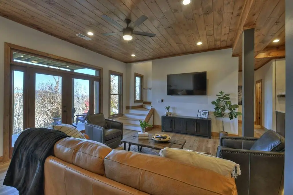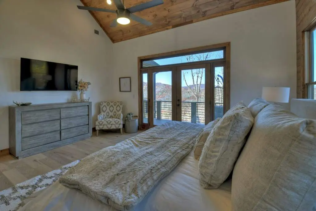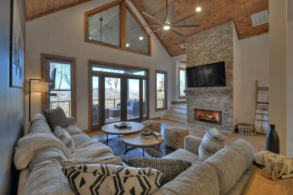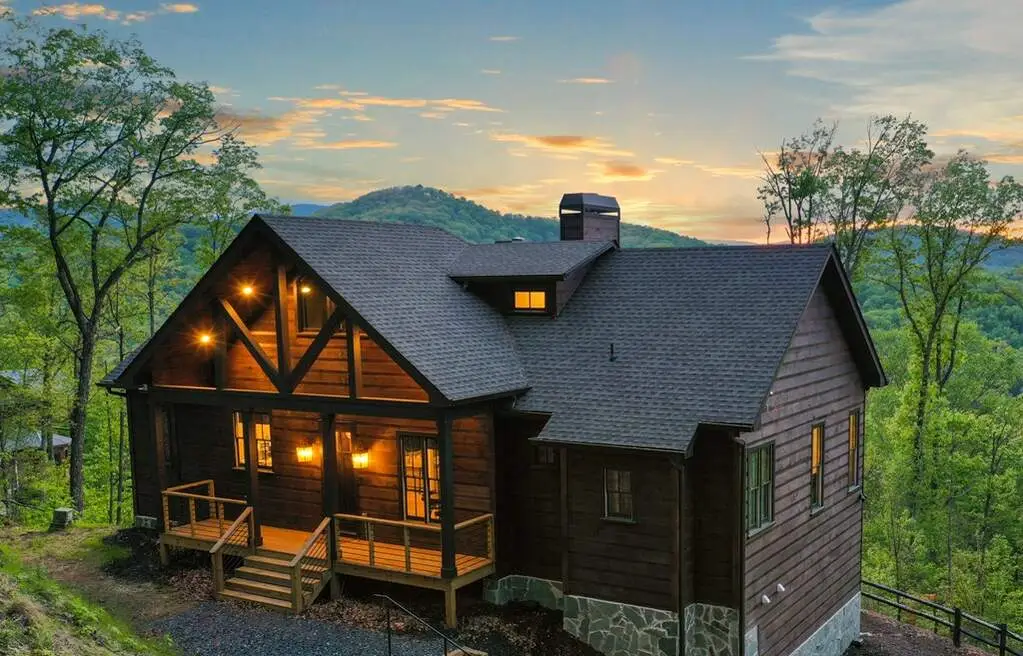 As seen on HGTV - Luxury mountain escape with STUNNING, unobstructed SUNSET VIEWS overlooking the Cohutta Wilderness! Upscale gated community with all paved roads, underground power and high speed internet. Professionally designed with high-end finishes and upgrades throughout, with an open concept floor plan that features vaulted ceilings and floor-to-ceiling windows to take in the incredible long range views. Meticulously maintained 4 bedroom, 3 bath plus additional sleeping loft with wow factor views from every room! Well-appointed chefs kitchen with separate dining area for large family gatherings. Plenty of outdoor entertaining areas including oversized covered porch off great room featuring a must-have outdoor fireplace and dining area overlooking one of the best views in Blue Ridge!. Terrace level features 2 additional guest suites, wet bar, game room and additional covered porch area with hot tub. Whole house water filtration system. Top of the mountain with plenty of parking, perfect for luxury rental program, full time living or much needed mountain getaway. Scenic drive conveniently located to historic downtown Blue Ridge, as well as, hiking, trophy trout fishing, Lake Blue Ridge, horse back riding, shopping, dining and more!