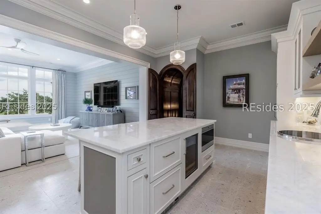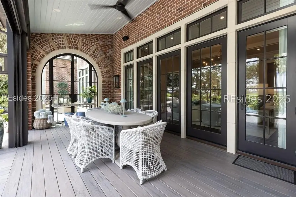Discover unparalleled waterfront living in this magnificent estate home located in the prestigious Colleton River community of Bluffton, South Carolina. Perfectly positioned on a premium deepwater homesite, this residence offers the rare privilege of a 24/7 deepwater dock, granting effortless access to the Intracoastal Waterway and beyond. Elegantly designed and completely renovated with no detail overlooked, the home features 5 spacious bedrooms, 6 full baths, and 3 half baths across an expansive floor plan. Guests are welcomed by a grand entranceway staircase, while an elegant elevator services all floors, blending timeless sophistication with modern convenience. With 8038 square feet, every space has been curated by a professional designer and is being offered fully furnished, creating a true turnkey opportunity. Inside, stunning craftsmanship meets modern luxury with custom-built features throughout including bespoke lighting fixtures, furniture pieces, interior and exterior upgrades created exclusively for this residence. A reimagined chef's kitchen, gracious entertaining spaces, and a seamless flow between indoors and out make this home ideal for both relaxed living and sophisticated gatherings. Outdoors, your private resort awaits. A newly rebuilt infinity-edge pool seems to cascade into the water beyond, while the four-season screened porch allows year-round enjoyment of the Lowcountry's natural beauty. With sweeping west-facing views, the sunsets here are nothing short of spectacular.This home is a rare masterpiece of quality, design, and waterfront luxury, perfectly situated in one of the most sought-after gated communities in the Lowcountry.