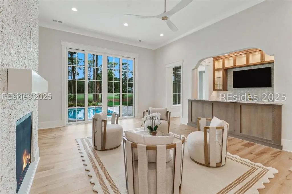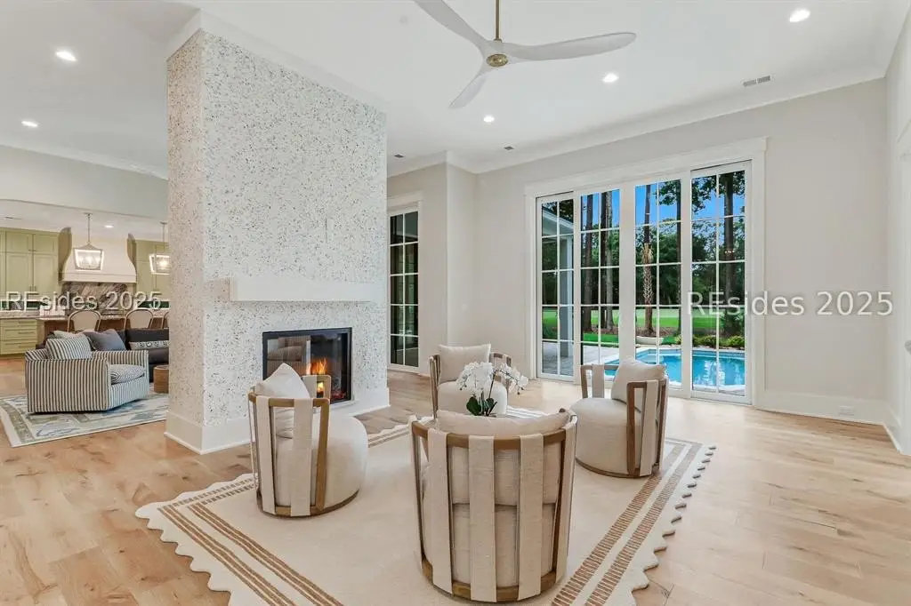 Step into brand-new luxury in the prestigious Colleton River Club, where fresh designer finishes meet panoramic golf course and lagoon views along the sixth hole of the Jack Nicklaus Signature Course. This four-bedroom/four-and-a-half-bath home offers a chefs kitchen with high-end appliances, butlers pantry, and full bar for seamless entertaining. Enjoy a heated & chilled pool with water feature and fire bowls, outdoor kitchen, and a golfers porch with stunning views. Additional highlights include a private study/home office, impact-rated windows, full paver driveway, and three-car epoxy-floored garage. Residents enjoy two signature golf courses by Nicklaus and Dye, two clubhouses, fitness, tennis, pickleball, boating, and more in this gated waterfront community.