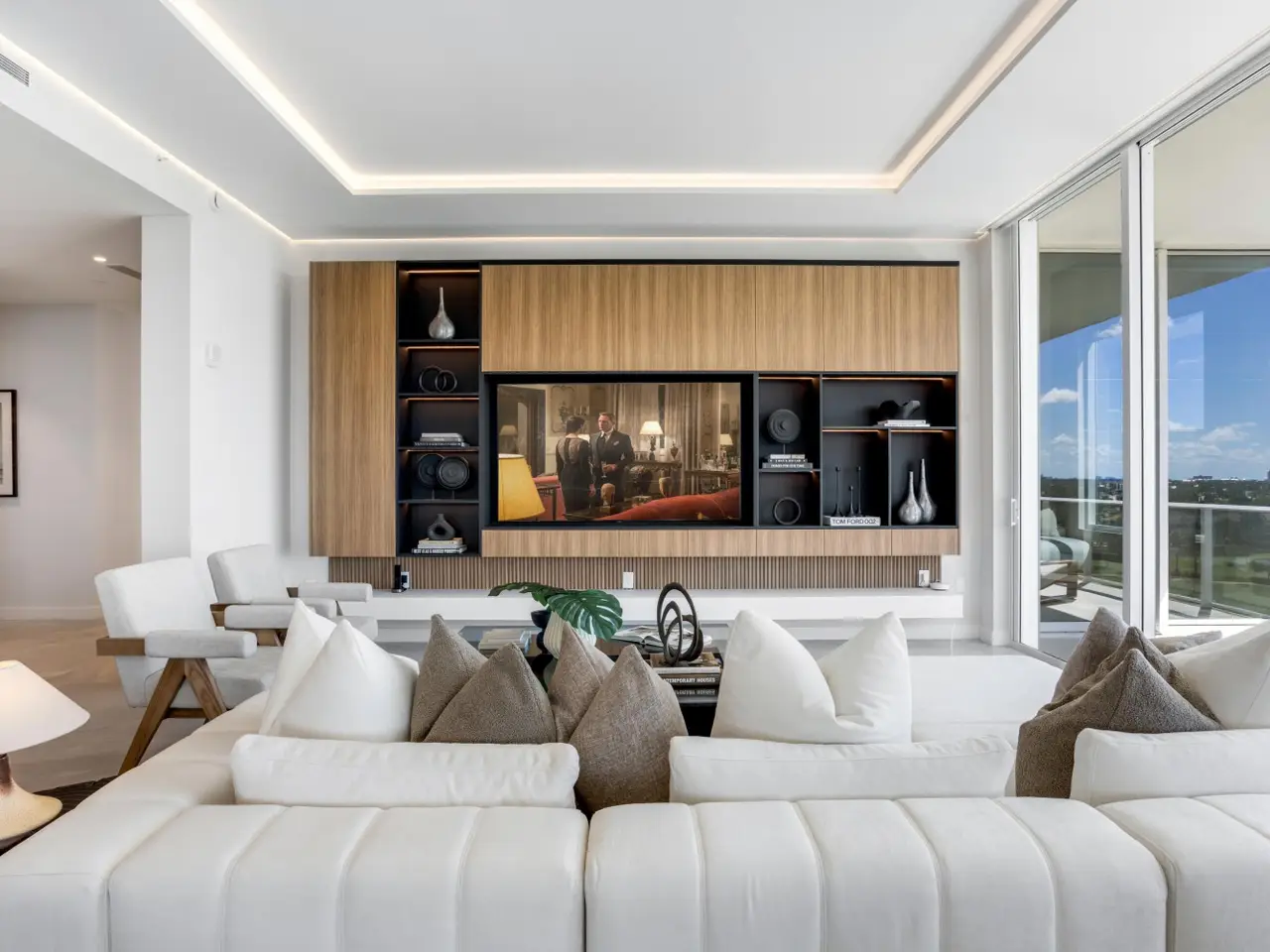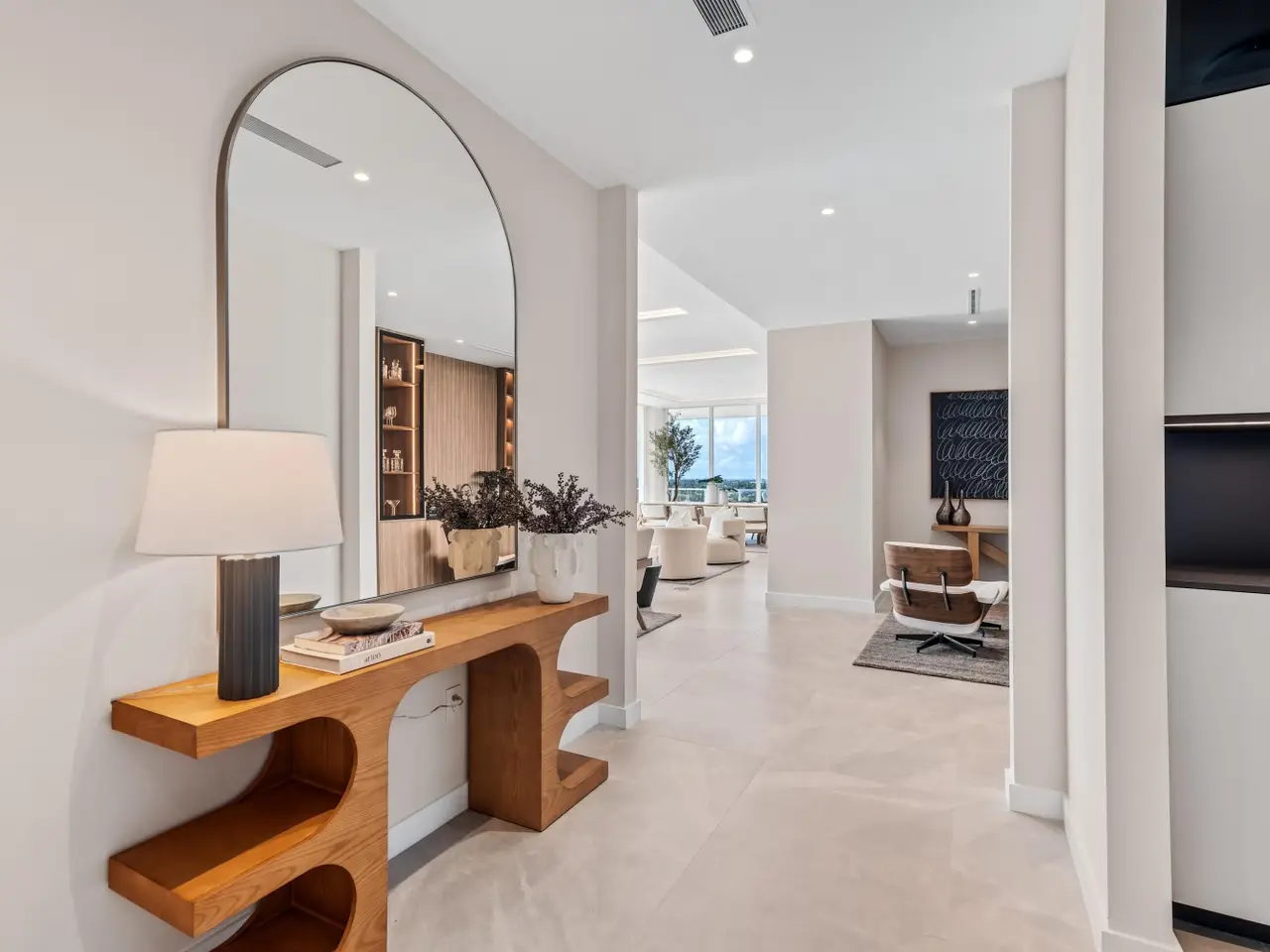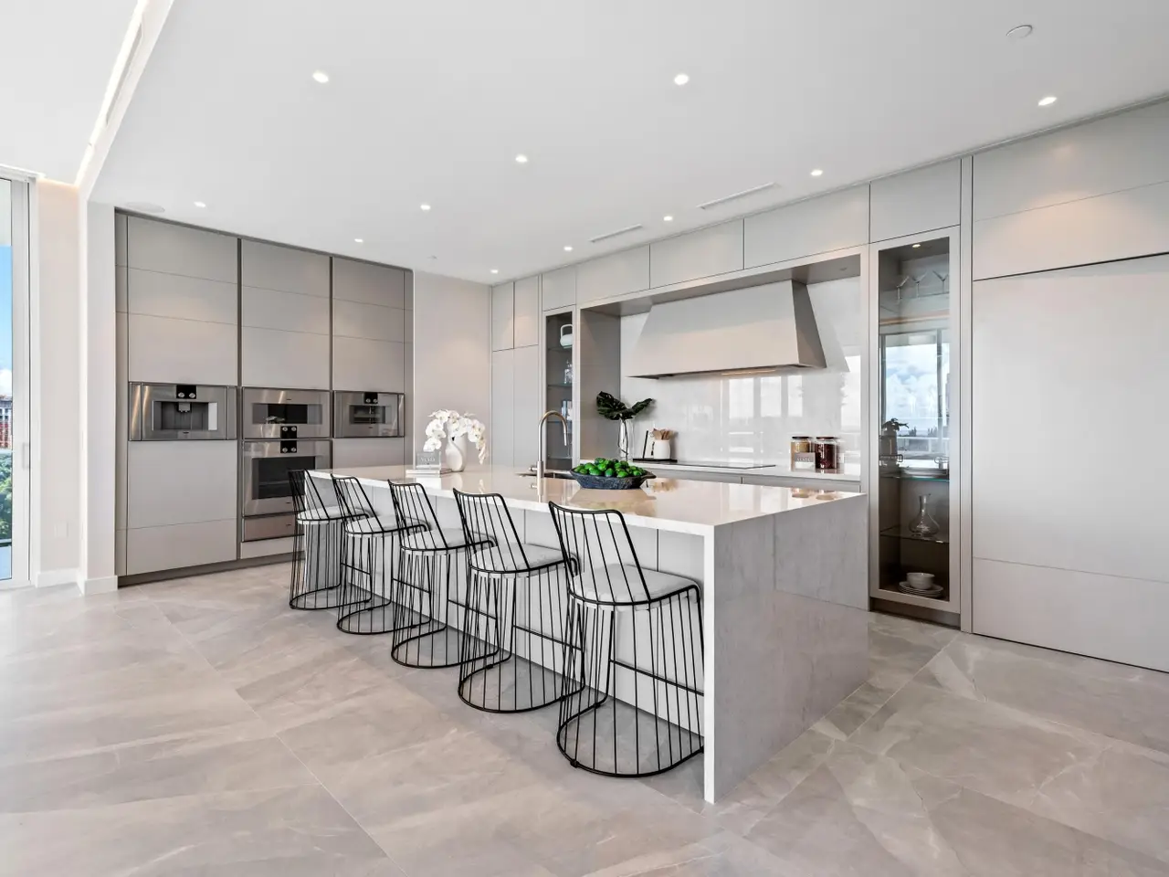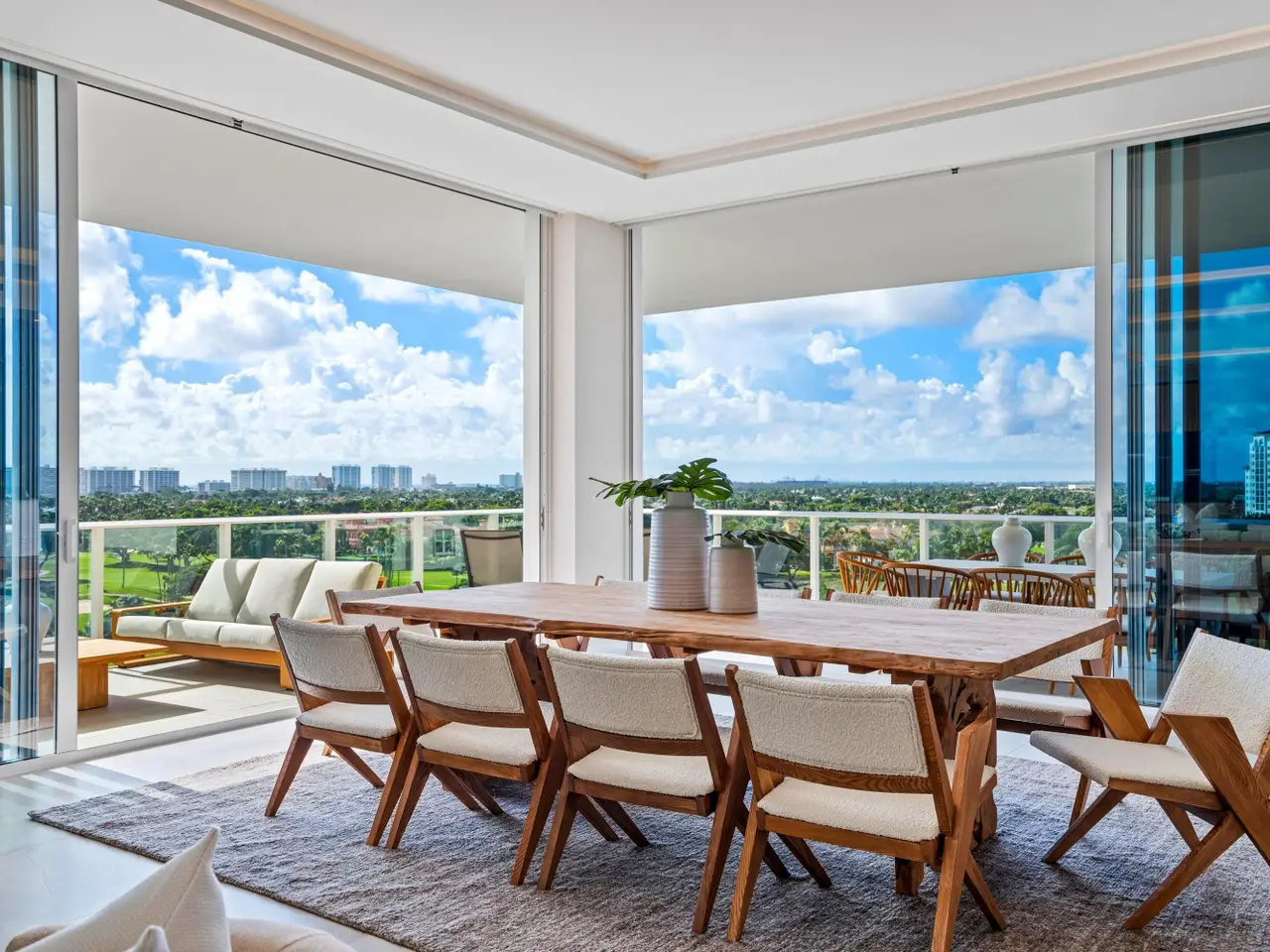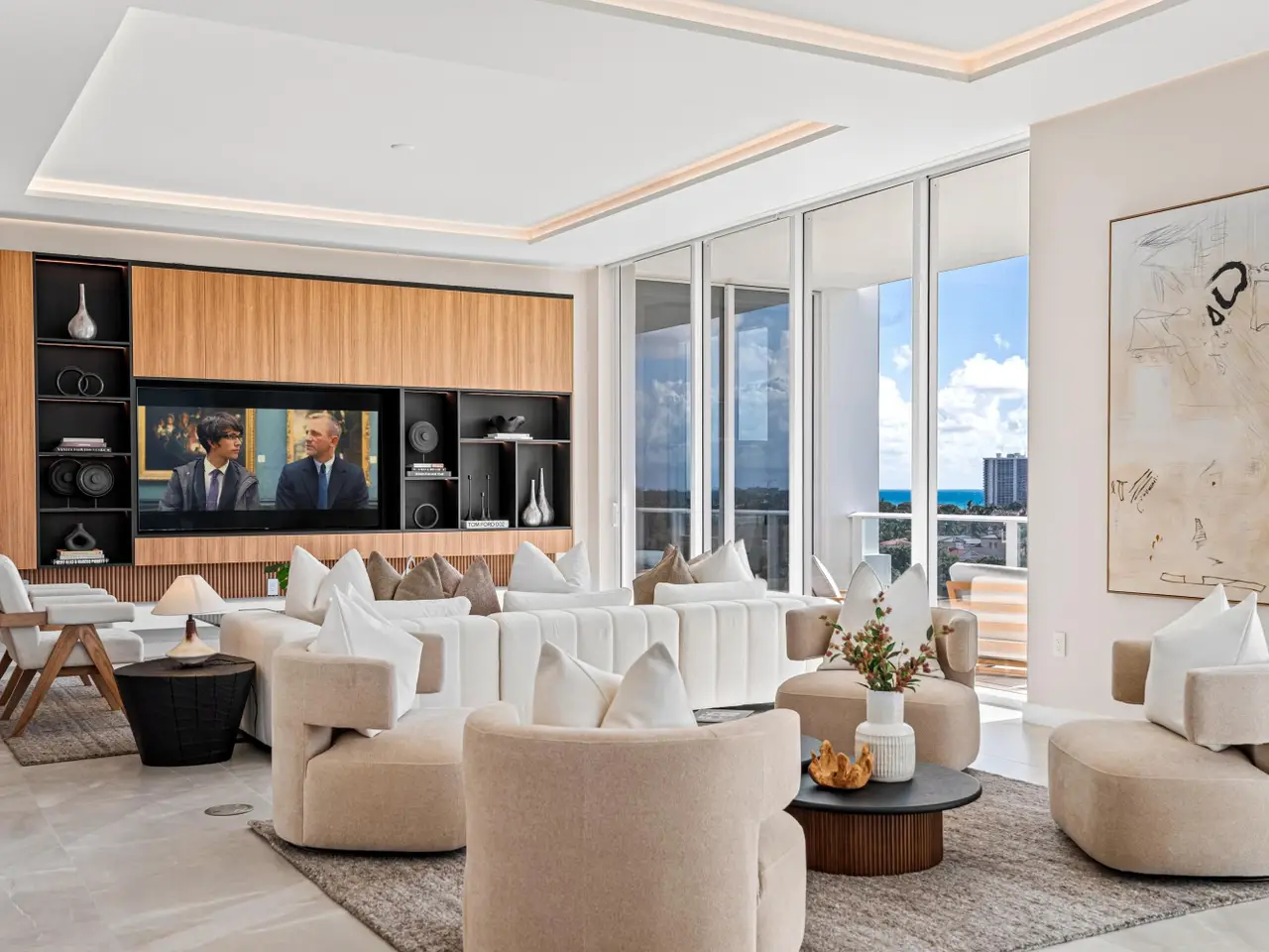 220 South East Mizner Boulevard, Boca Raton, Florida. Ideally situated in the heart of downtown Boca Raton, Alina 220 stands as a landmark of contemporary sophistication overlooking the posh Boca Raton Resort's verdant green fairways and the azure ocean beyond. Created by one of New York's most renowned developers, this nine-story architectural masterpiece encompasses 152 exclusive private residences surrounded by 8.5 acres of lush, artfully landscaped grounds.Residents enjoy immediate access to the city's most desirable destinations: Royal Palm Place, Mizner Park, fine dining, upscale galleries, and couture boutiques, only steps away. The resort-style amenities include an elegant lobby, elite-performance fitness center, club and game rooms, private yoga studio, ... continued ... Occupying the uppermost floor of Alina 220, this brand-new, fully custom finished southeast-corner Penthouse represents the pinnacle of modern Boca Raton living. Spanning 5,151± total square feet, the three-bedroom, split-plan residence combines dramatic architectural volume with ultra-luxury appointments throughout. Expansive walls of floor-to-ceiling glass capture panoramic breathtaking views of The Boca Raton Resort’s emerald fairways and the azure Atlantic Ocean, seamlessly invite the captivating, serene vistas of the natural surroundings infused into the interior living spaces. The expansive great room, encompassing living, dining, and media areas, is bathed in natural light and framed by 11-foot± tray ceilings with concealed recessed linear lighting, creating a sense of airy grandeur. Adjacent to the light infused great room, a tailored den with tailored cabinetry and wet bar complements the designer European-style kitchen, a true showpiece featuring a cascading-edge island, custom cabinetry, porcelain countertops, Gaggenau appliances, and a spacious walk-in pantry. The primary suite serves as a private sanctuary, offering dual walk-in closets, a private sitting room, and a spa-inspired marble bath with freestanding soaking tub, dual vanities, large glass-enclosed multi-head shower, and two water closets — all oriented toward sweeping views of the golf course, skyline, and ocean. Two additional guest suites provide equally stunning vistas. Additional features include a powder room, laundry room, summer kitchen, two garage spaces, private elevator access, Savant Smart Home automation, premium Samsung TVs, Lutron lighting, and a full security system.