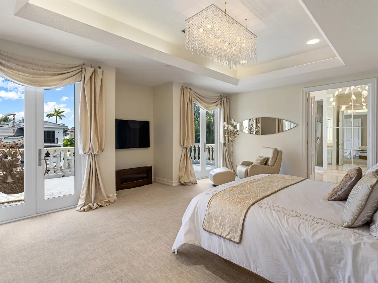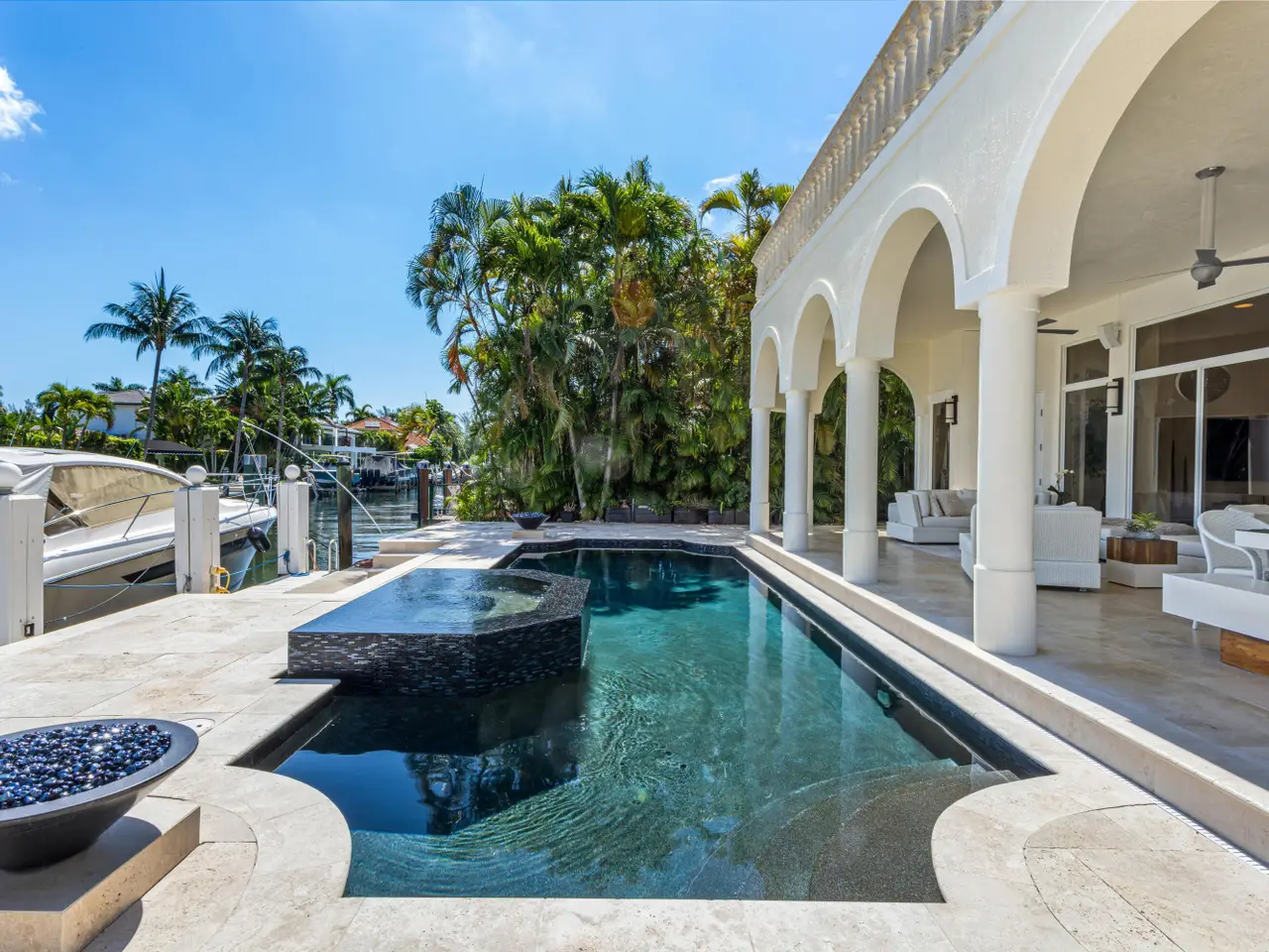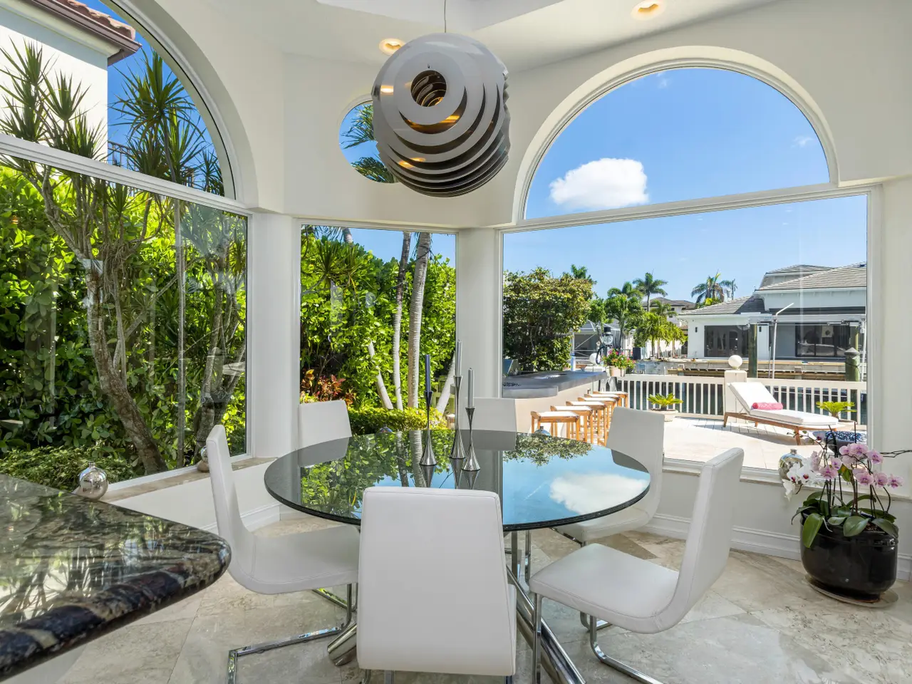 Luxe Boca Raton deepwater estate in the desirable Lake Rogers community fronts 80 feet on a deep-water canal with a dock offering easy ocean access, desirable for boaters. Interiors are peerlessly defined by grand architectural adornments, and the magnificent outdoor entertaining area centers on a sun-splashed pool with a spill-over spa bounded by an expansive patio with a wet bar and barbeque area.