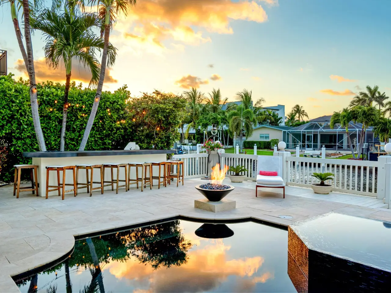 Sun-splashed pool with spill-over spa