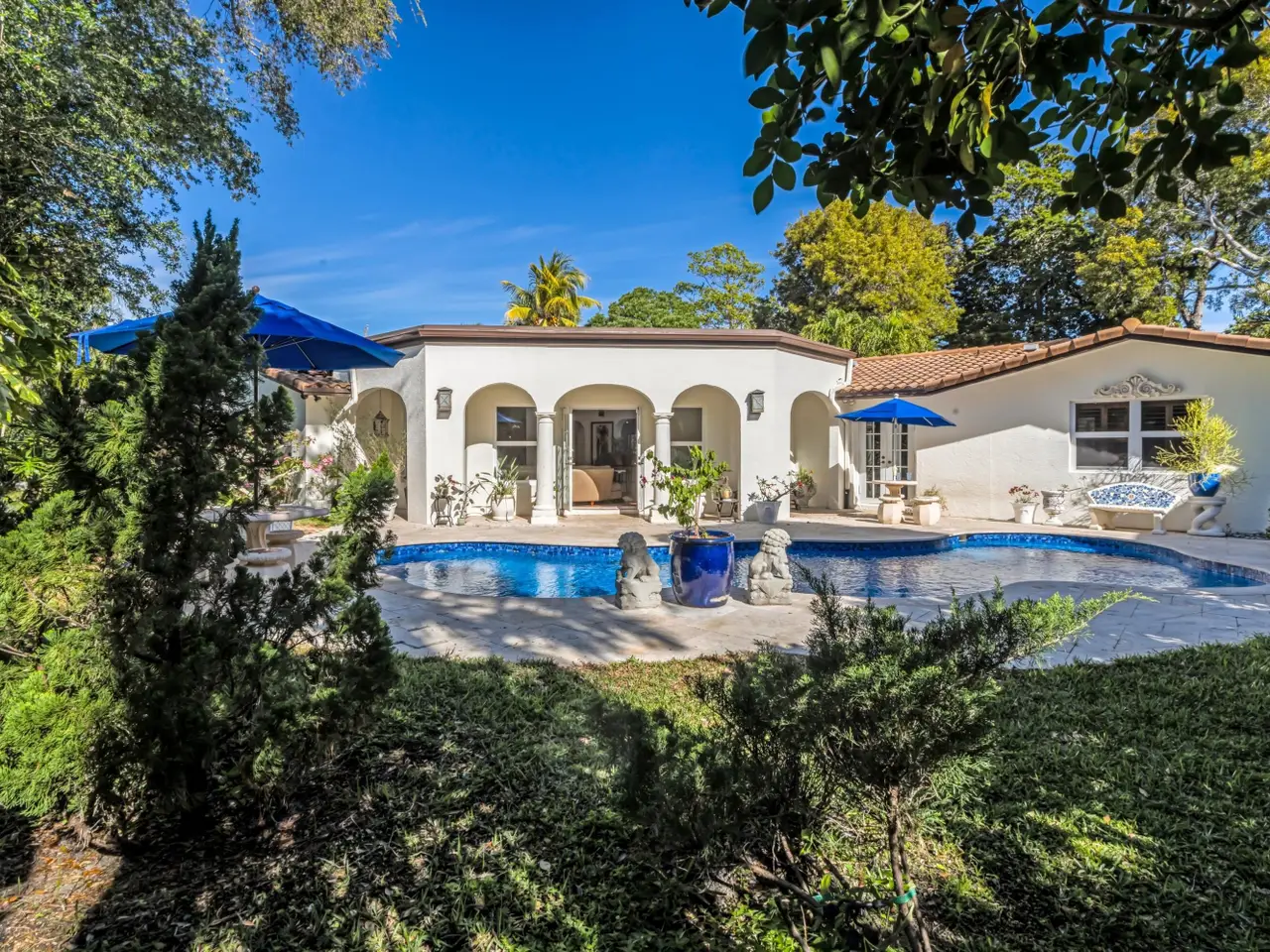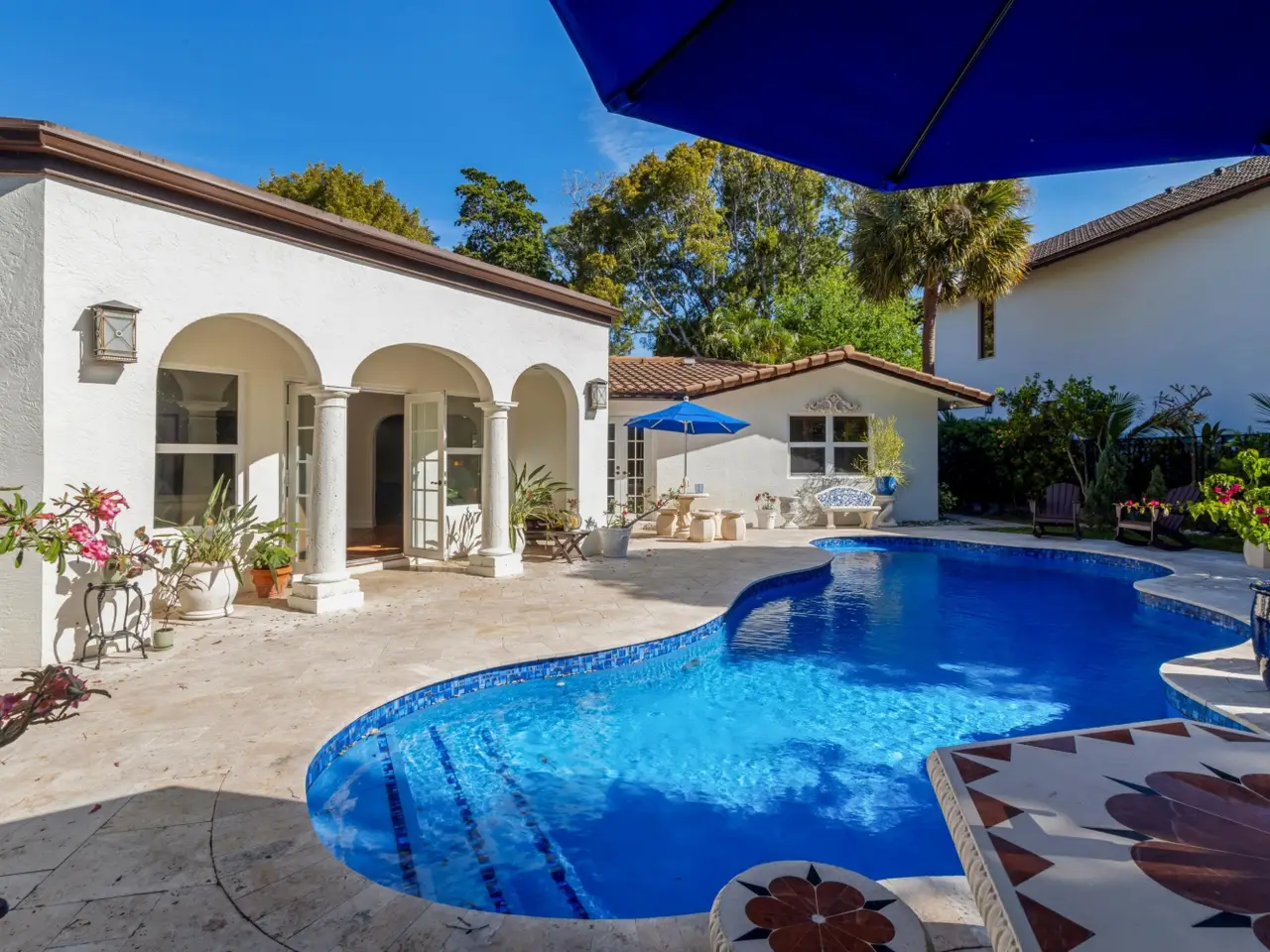Welcome to 898 Azalea Street, in Boca Raton's historic Old Floresta enclave. Sited on a prime corner lot with canopy trees and lush tropical foliage, this Spanish Colonial-style property exudes allure with its pecky cypress ceilings, classic arches, niches, and decorative columns. The Old Floresta residence features a free-flowing floor plan, a split-bedroom layout, and details such as whitewashed brick and lustrous French clay floors. A convertible VIP suite offers the option for an additional fourth bedroom. The loggia opens to a custom saltwater pool (2020) and a private oasis. Showings are by appointment only.