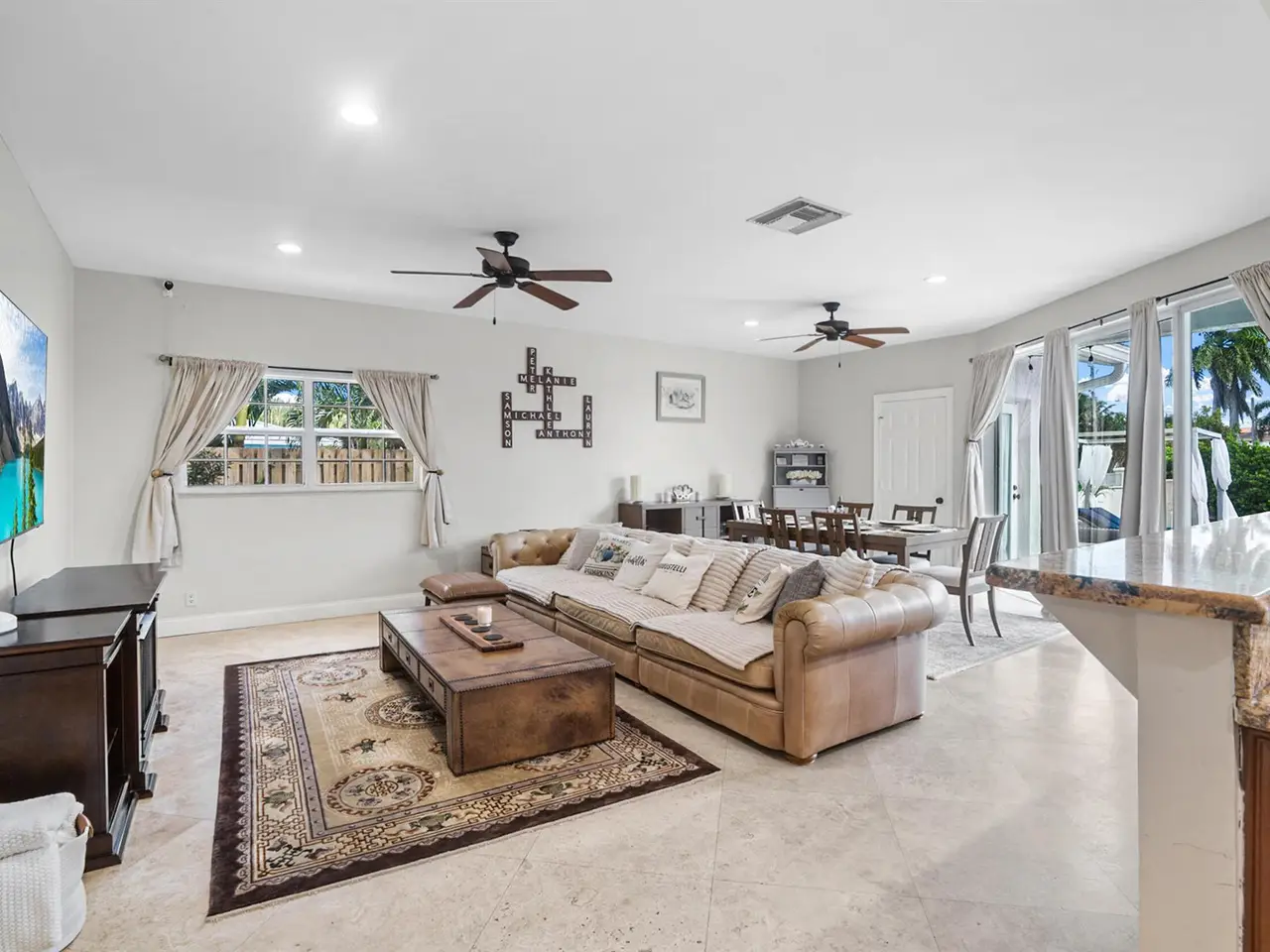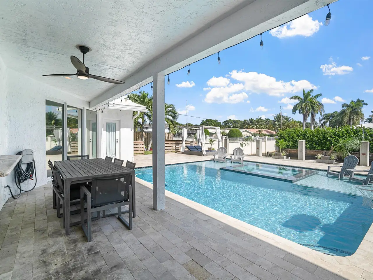 Experience luxury waterfront living in this Deepwater Dream Home, featuring a resort-style pool and spa, tiki bar, and a fully equipped summer kitchen--perfect for entertaining. The property offers protected dockage with 90 feet of waterfrontage, ideal for the avid yachtsman. Recent upgrades include a newer roof, three newer A/C units, concrete dock and seawall, and completion of impact-resistant windows and doors throughout. Enjoy the ultimate South Florida lifestyle in this beautiful waterfront residence. Can be easily converted to a 2-car garage. All upgrades, dates, pricing, and survey located in the document section. Owner financing available.