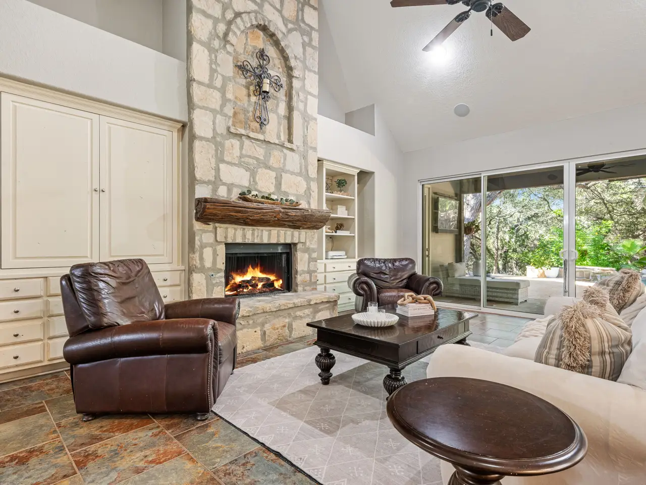 Exceptional Hill Country Living with Privacy, Luxury, and Timeless Charm Nestled in the highly sought-after Village Green community, this beautiful residence offers nearly 4,000 square feet of thoughtfully designed living space on a lush, tree-filled half-acre lot that backs to a serene greenbelt. Surrounded by mature oaks and enhanced by extensive updates and improvements, this home captures the perfect balance of comfort, elegance, and functionality. Highlights & Features Outdoor Oasis Private greenbelt lot with mature oak trees for exceptional privacy Resort-style pool with turtle shelf and waterfall feature Expansive patio and new sun deck area - perfect for outdoor entertaining Mosquito misting system and backyard audio system for added comfort and enjoyment Detached storage building remains with the property Interior Excellence Open-concept floor plan ideal for everyday living and entertaining Tall, vaulted ceilings and custom built-in cabinetry in the living area Elegant rotunda ceilings in the foyer and dining room Plantation shutters throughout Seamless flow between kitchen, breakfast area, and living space. Gourmet Kitchen Large center island with abundant storage and seating Gas cooktop and stainless-steel appliances Oversized pantry and extensive custom cabinetry Recently added sliding glass doors and picture window fill the home with natural light and create a true indoor-outdoor connection Private Primary Retreat Expansive primary suite with private access to the backyard and pool Spa-inspired bath with walk-in shower, soaking tub, and dual vanities Generous walk-in closet with custom organization Upstairs Addition New guest suite with private bath Media room with large drop-down movie screen - ideal for family nights or entertaining Additional bathroom and flexible space for guests or hobbies Additional Features Tankless water heater Reverse osmosis system and water softener Three-car garage with epoxy flooring and built-in storage Laundry room with sink, desk area, and secondary entrance from the driveway Key Details 5 Bedrooms - 5 Baths Approx. 3,969 SQFT Over Half-Acre Lot Extensive Home Improvements & Upgrades Village Green Community - Convenient to Downtown Boerne and I-10 Investment in Quality More than $160,000 in recent upgrades and improvements, including flooring, lighting, additions, pool enhancements, outdoor features, and mechanical systems - ensuring comfort, efficiency, and lasting value - 11/4/2025 8:01:00 AM