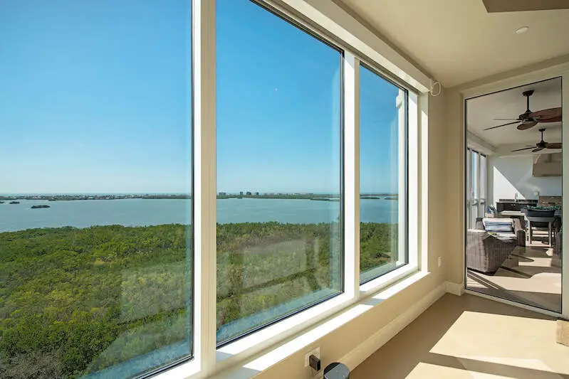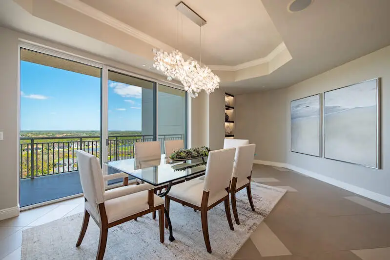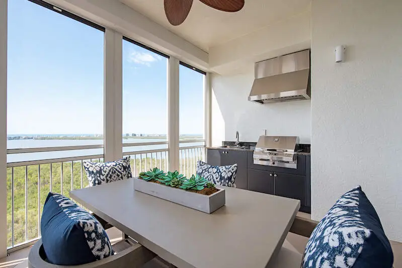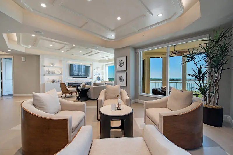 This beautifully appointed sky home, decorated by Robb & Stucky Interiors, offers unparalleled luxury. Enjoy both sunrises in the east and dramatic sunsets on your screened lanai overlooking the Gulf & Estero Bay. Park securely in the two designated spaces, with additional storage located conveniently near the entrance. Enter through your private secured elevator lobby to discover 3 spacious bedrooms and 3 bathrooms. The kitchen is a chef's dream with a Wolfe gas cooktop and Sub-Zero appliances. The master suite features a private sitting area, large his and her custom walk-in closets, and a bathroom with a walk-in shower and soaking tub. Amenities include a rooftop social area, gym, theater, billiard room, sauna, and golf training room. Enjoy the total lifestyle that not only this condo offers, but Bonita Bay w/5 golf courses, private beach, marina, sports/racquet center w/ resort-style pool, lifestyle center w/ state-of-the-art fitness facility, luxury spa and salon, plus miles of walking & biking trails, & 3 parks.