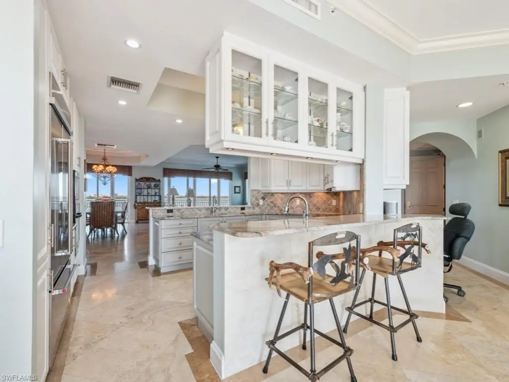 Breathtaking East to West views of Estero Bay with its morning sunrises and the Gulf of Mexico with its exquisite sunsets. The Horizons building stands alone with no disrupted views from your balcony and lanai. The Home offers 3 ensuite private bedrooms plus a den with views of the water. The kitchen, located in the heart of the home, creates an open and airy feeling from the breakfast room/family room as well as the living and dining rooms and is most desirable in today’s styles. Residing on the 6th floor gives easy access to the ground floor when necessary. 10-foot ceilings, large sliders, screened lanai with electric shutters 40+feet long, and an open terrace that allows lots of outdoor living spaces for its owner. Rarely included are the 3 assigned parking spaces for this unit. This home is a great opportunity for you to create your own personal tastes. Horizons has very recently been updated with new exterior paint color and lush landscaping, social and card room area and large screen TV’s. The pool is gorgeous and renovated w/firepits and an outdoor kitchen/bar area for entertaining. The entry has also been updated and looks amazing. There are 2 guest suites should you need an extra bedroom for your guests. There is also an assigned storage space. Living in Horizons is extremely desirable with its great social life and the beautiful amenities it offers not to mention the easiest lifestyle that there is. As part of the master-planned Bonita Bay community, you’ll have access to 2,400 acres of beautifully landscaped grounds, a private beach park, and a variety of community parks. Engage in outdoor activities like kayaking and canoeing, or challenge friends to a game of pickleball or tennis. This home is a wonderful opportunity to embrace a relaxed lifestyle in Bonita Bay, surrounded by nature's beauty. Schedule your private tour today!