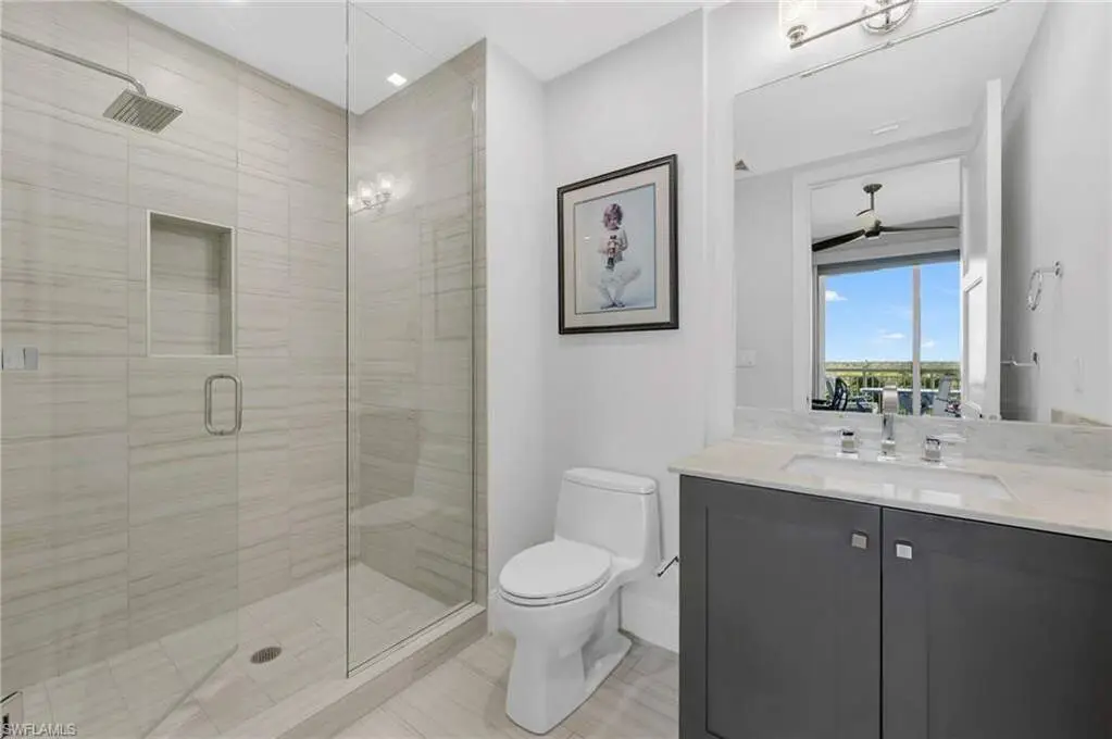 Welcome to this stunning 3 Bed, plus Den, 3.5 Bath residence in one of Bonita Bay's premier high-rises - SEAGLASS. A private elevator entry foyer leads you into an elegant and sophisticated open living area with 10" ceilings and a ceramic wood effect floor tile throughout the home that features many upgrades. this west-facing home, overlooking the Bay Island golf course, features an expansive terrace with a grill, power screens and power shutters - Perfect for soaking in the dramatic and beath taking sunsets over the Gulf of Mexico. There are 2 well-spaced guest bedrooms, with terrace, to ensure privacy for your guests. EV capable garaging for 2 cars on upper-level parking. Seaglass residents benefit from a vibrant social scene with a social room, card room, theater, fitness center, pool room and a stunning pool and spa with an outdoor screened cabana. There are 4 guest suites for your visitor's convenience. Bonita Bay offers an unparalleled lifestyle with 5 golf courses, 18-court tennis center, state-of-the-art fitness center, luxury spa, full-service marina, private Gulf-front beach park, 5 unique dining options, 10 pickleball courts, and numerous recreational activities including canoeing, bocce ball, and more.