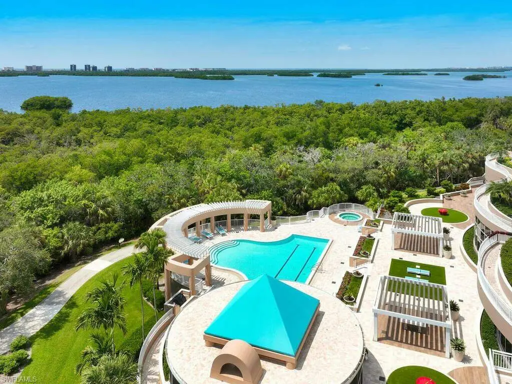 Enjoy the perfect vantage point above Estero Bay looking to the Gulf beyond from Azure 701. Three bedrooms plus den, three full and one-half baths, and an oversized private enclosed two-car garage below. Stunning decor and finishing touches by renowned Gary David Designs, generous living spaces with living and family rooms, ample balcony spaces, private elevator lobby with secured elevator. Gourmet kitchen with gas cooktop, Wolf double wall over, wet bar with wine refrigerator. Enjoy the Azure lifestyle with gas cooking in both the kitchen and grille on your balcony. Experience all that Bonita Bay offers with access to a private marina, community beach facility, the finest club lifestyle available with the Bonita Bay Club's dining, golf, tennis, pickleball, fitness and spa facilities.